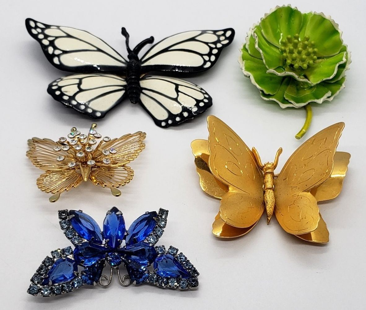 PLUSE (1)FLOWER METAL BROOCH-RHINESTONES-METAL-ENAMEL
