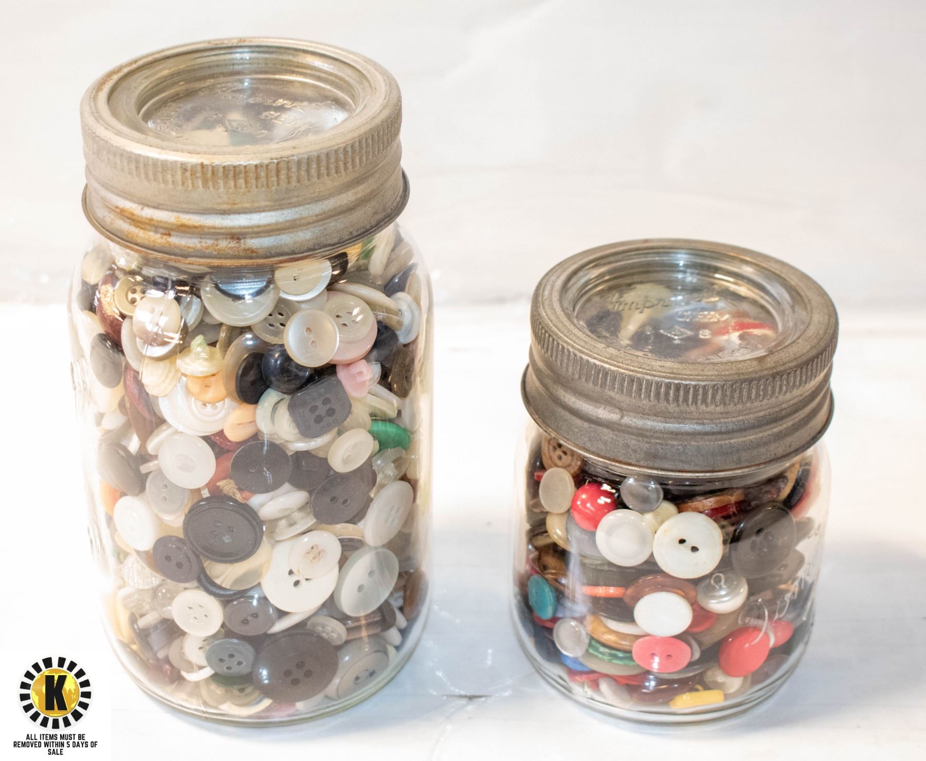 VINTAGE BUTTONS IN SEALER JARS- SET OF 2