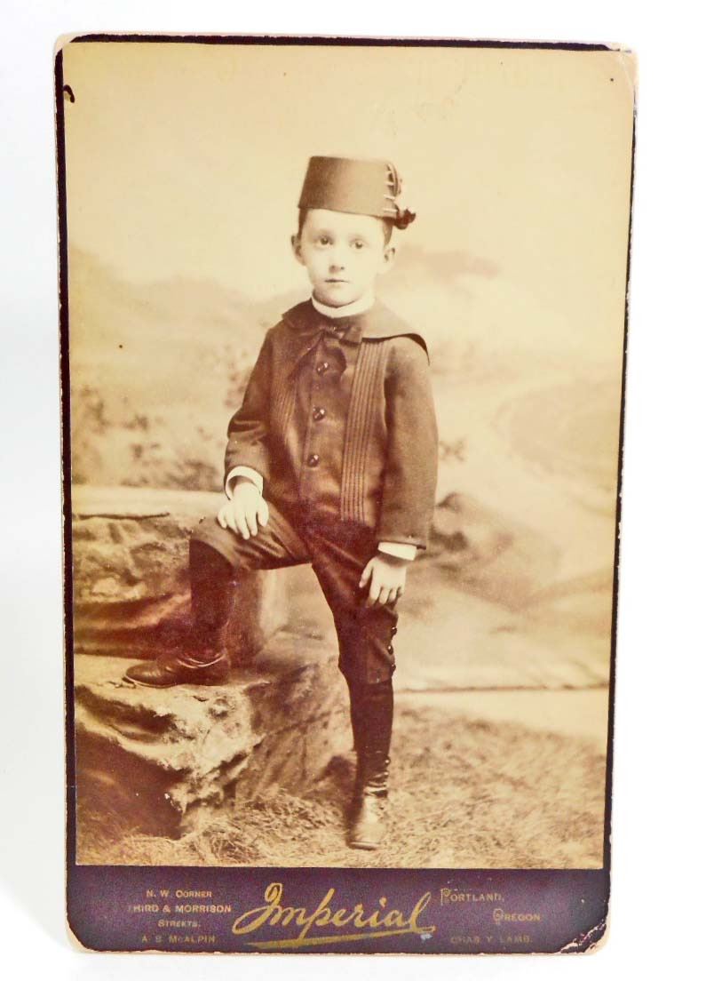 VINTAGE CABINET CARD PHOTO OF A FANCY DRESSED CHILD PORTLAND, OR.