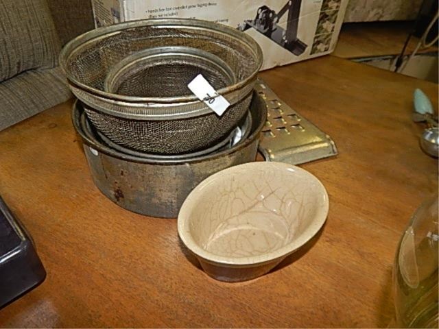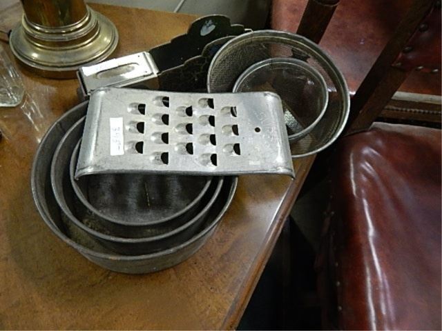 VINTAGE CAKE PAN, STRAINERS, GRATER & TAPE DISPENSER