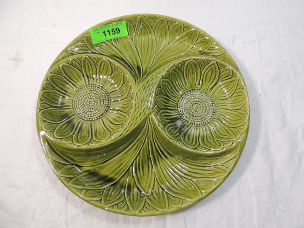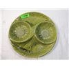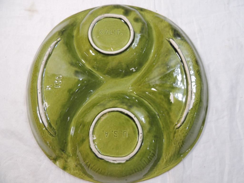 VINTAGE CALIFORNIA POTTERY SNACK SERVING DISH TRAY GREEN EMBOSSED FLORAL R130 AS SHOWN SEE PHOTO FOR MORE DETAILS.