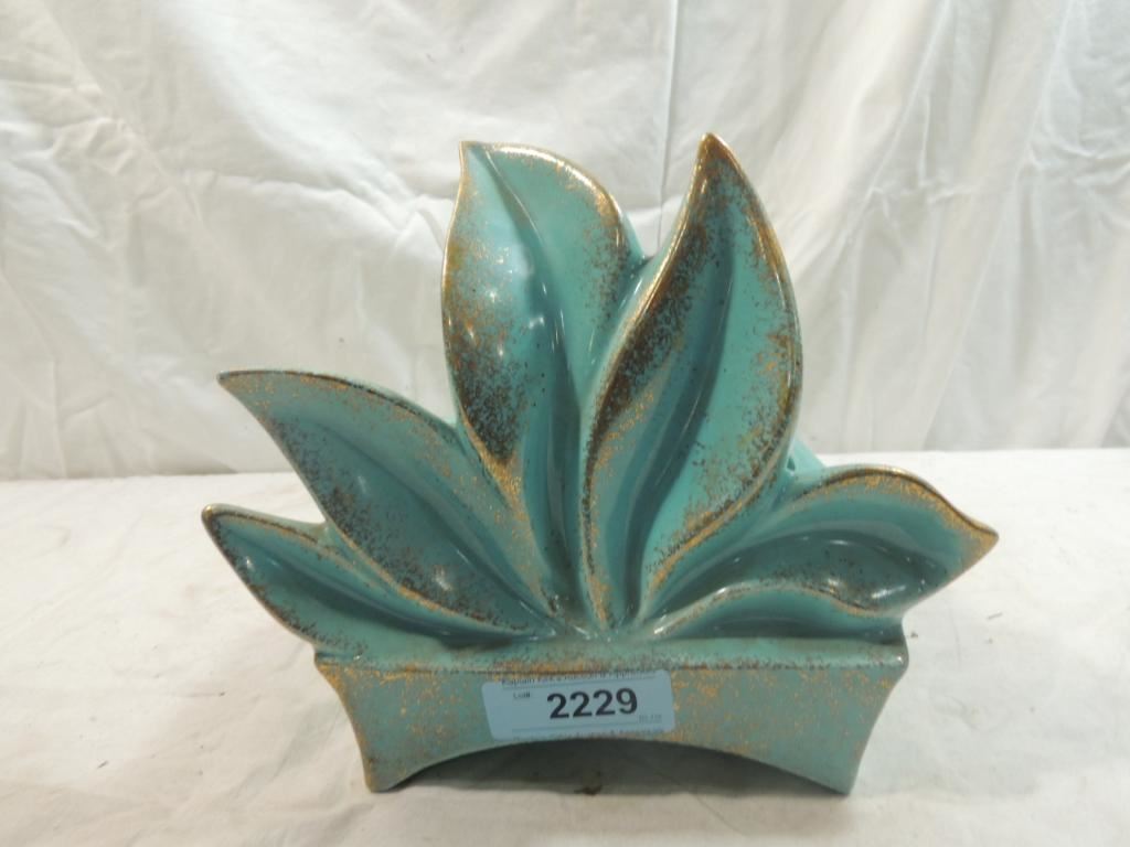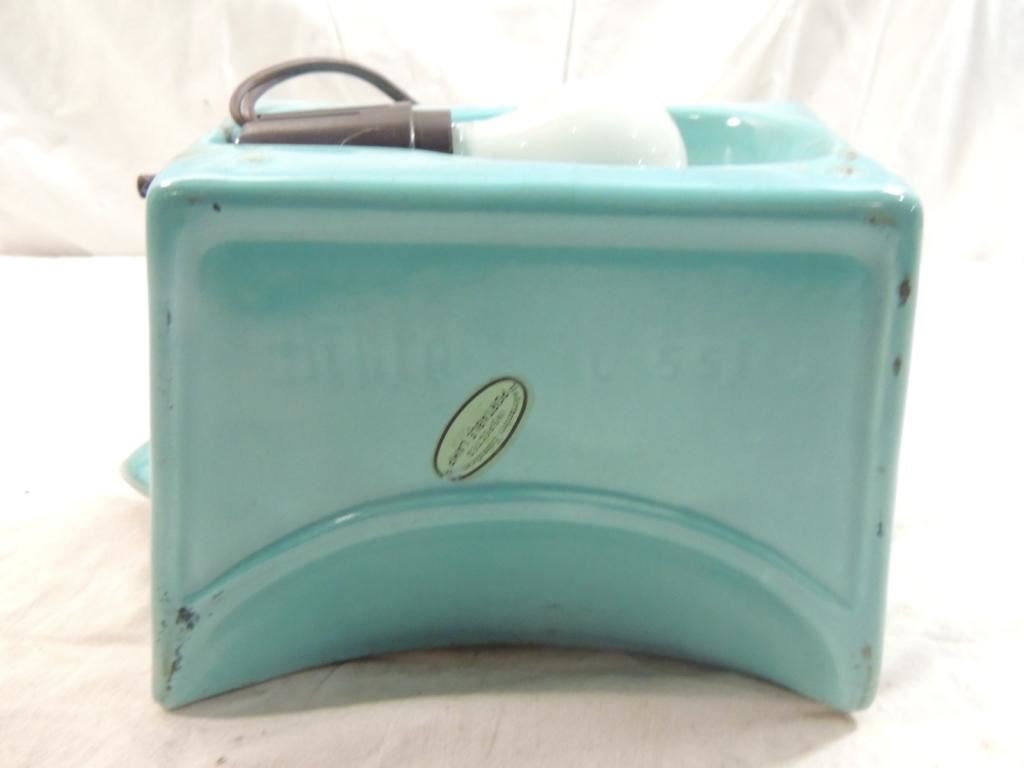 BACK LIGHT POTTERY LAMP, TEAL WITH GOLD ACCENT LEAF PLANT POTTERY LAMP, DECORATIVE VINTAGE TV LAMP AS SHOWN SEE PHOTO FOR MORE DETAILS.