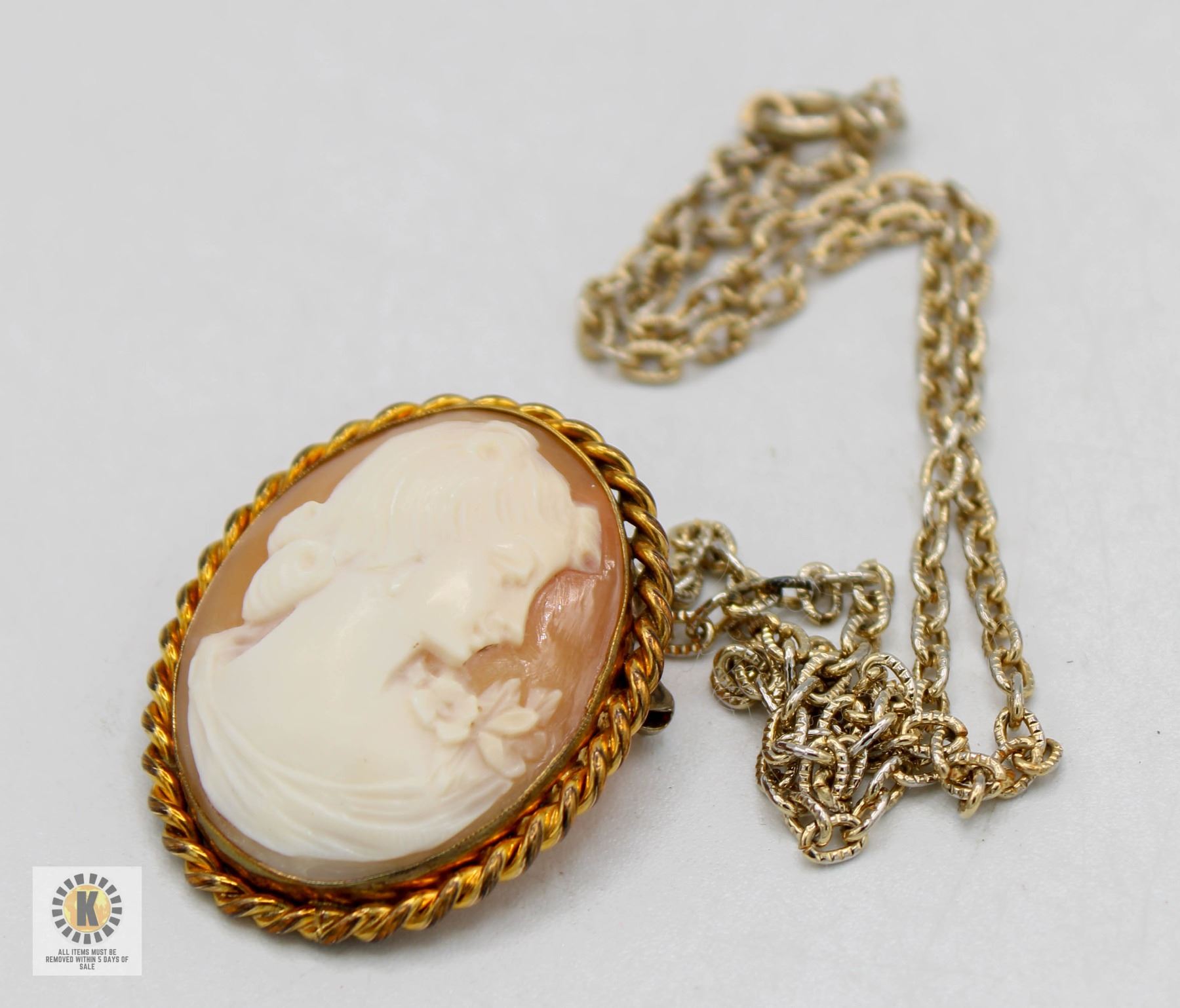 VINTAGE CAMEO BROOCH OR PENDANT WITH CHAIN