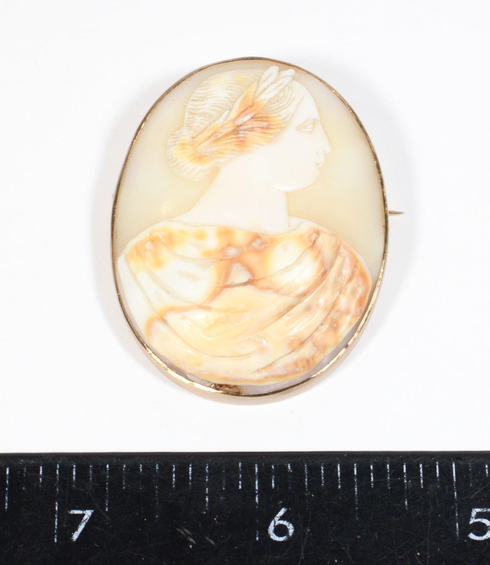 HAND-CARVED SHELL CAMEO BROOCH 5X4CM.