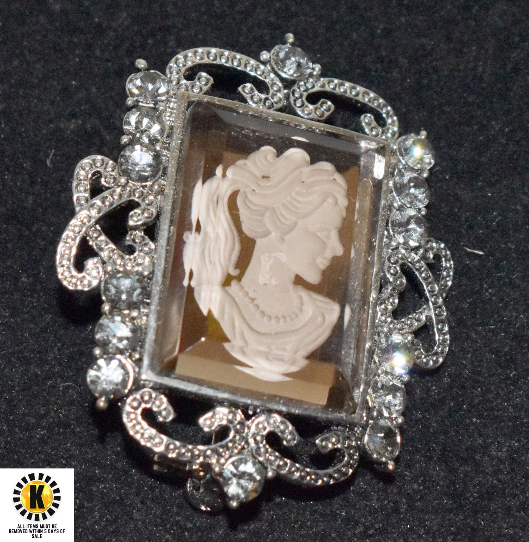 VINTAGE CAMEO WITH CRYSTAL STONES BROOCH