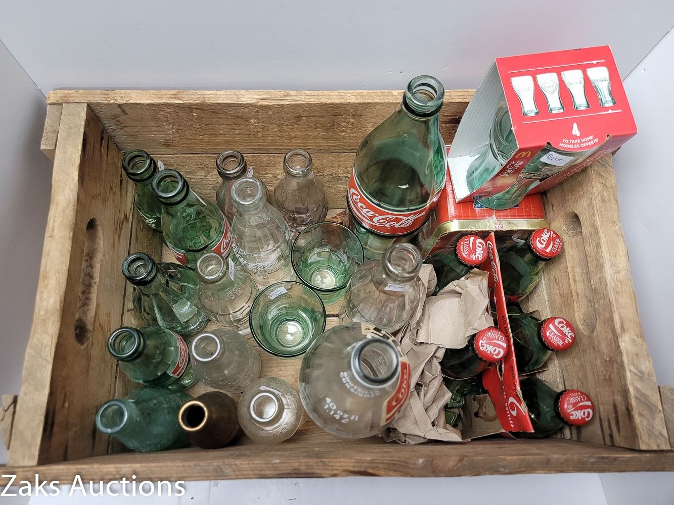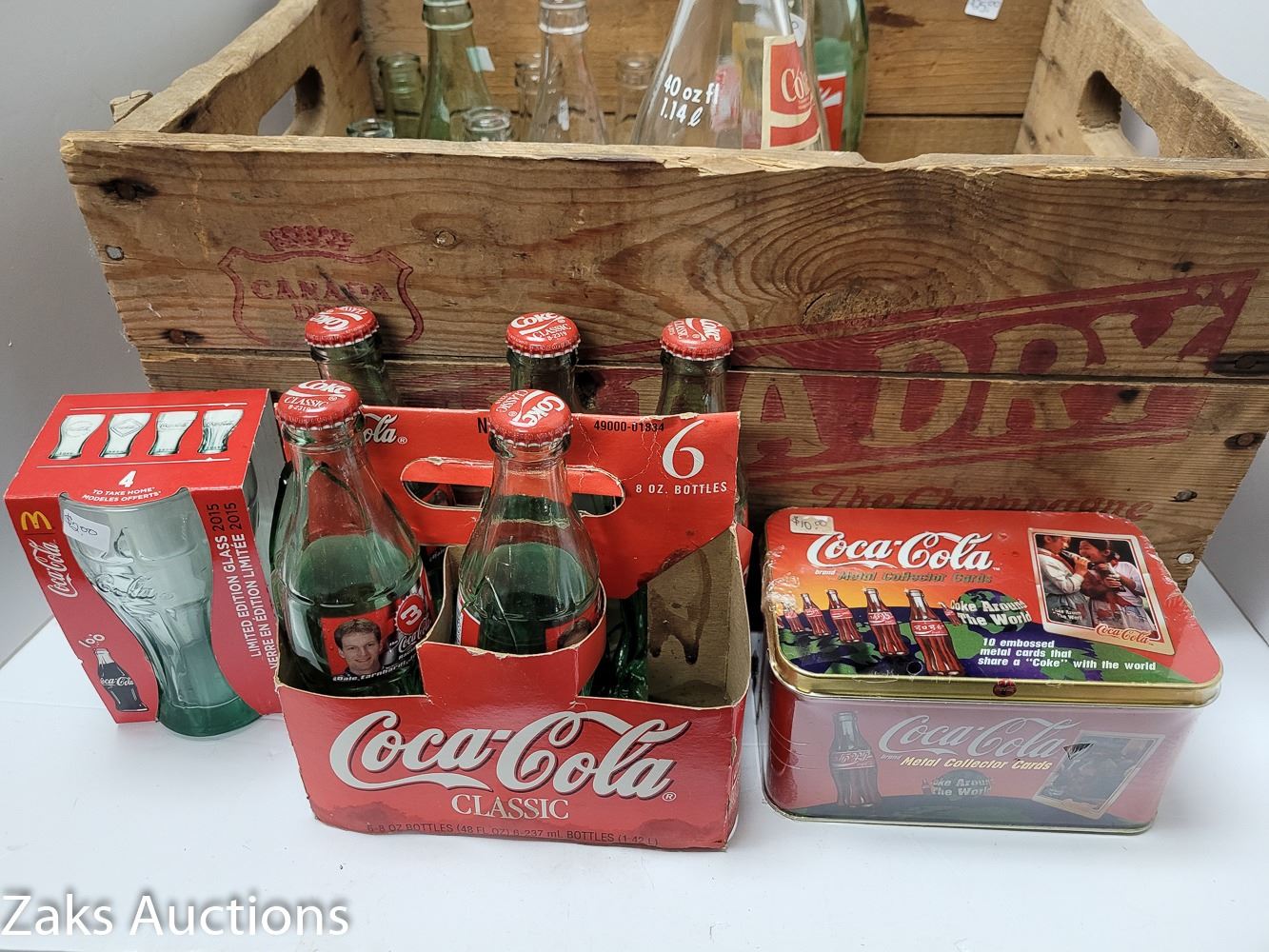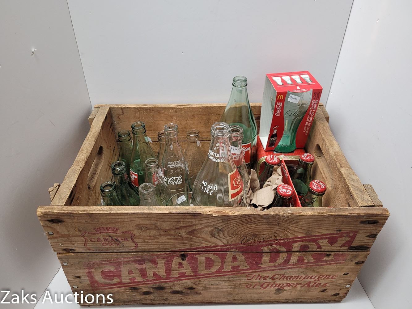 VINTAGE CANADA DRY BOX FILLED WITH VINTAGE COKE BOTTLES, ETC
