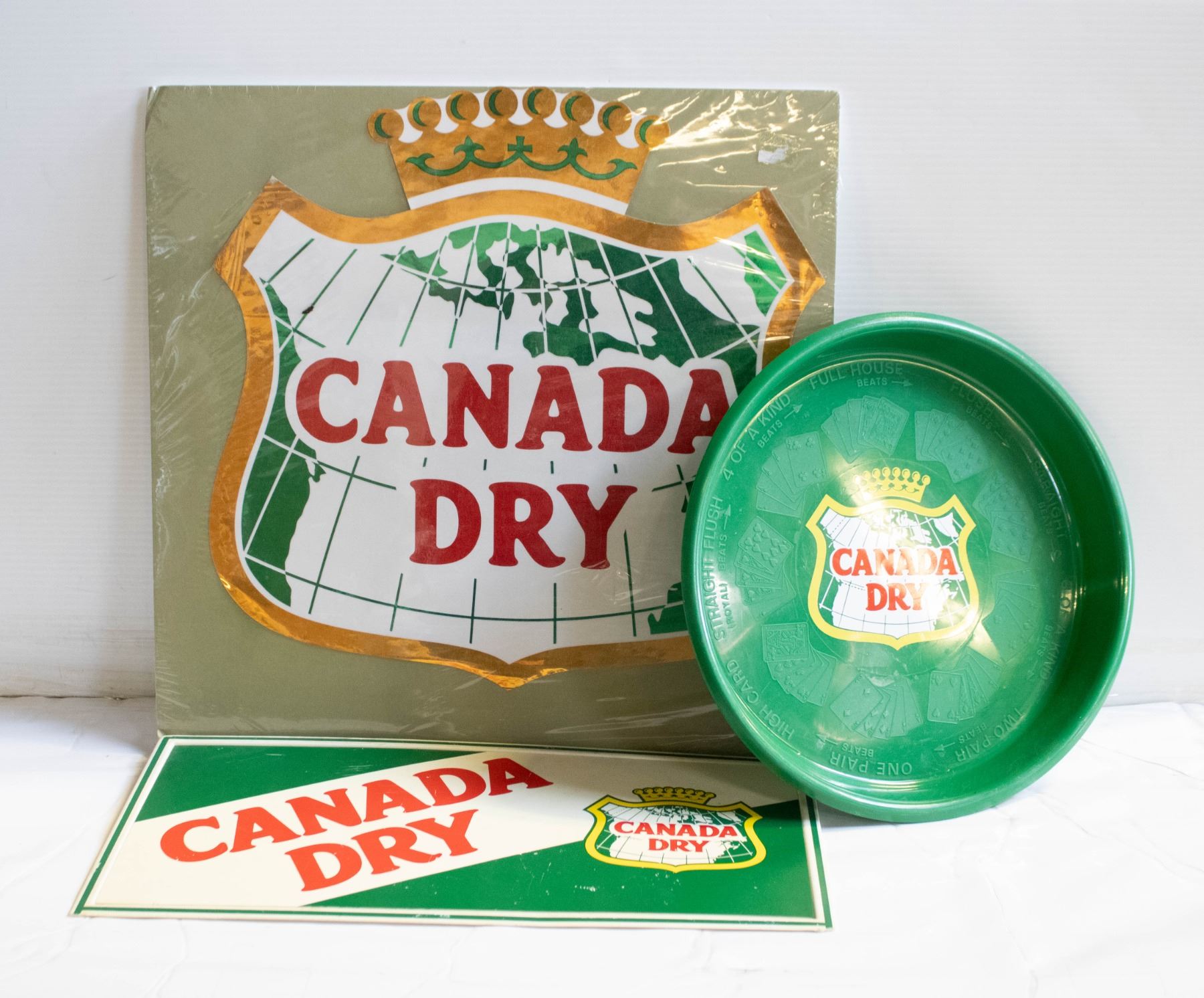 VINTAGE CANADA DRY COLLECTIBLE TRAY, SIGN & DECAL