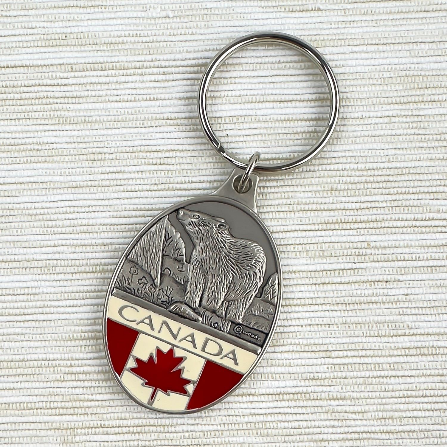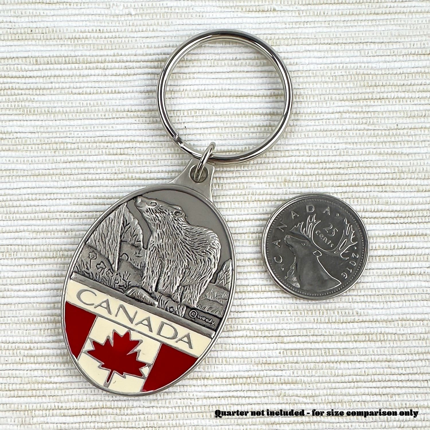 #8331 - VINTAGE CANADA CANADIAN KEYCHAIN - T & D COLLECTION. MAPLE LEAF, CANADIAN FLAG AND ANIMAL THEME. METAL PEWTER AUTO AUTOMOTIVE & HOUSE KEY HOLDER ADVERTISING COLLECTIBLE KEY CHAIN