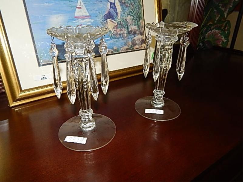 VINTAGE CANDLE HOLDERS - CRYSTAL TEAR DROPS - 2 MISSING