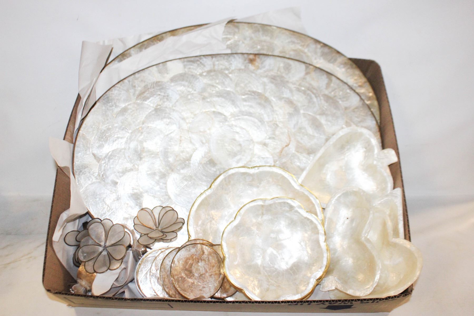 VINTAGE CAPIZ SHELL SERVING SET ASSORTED