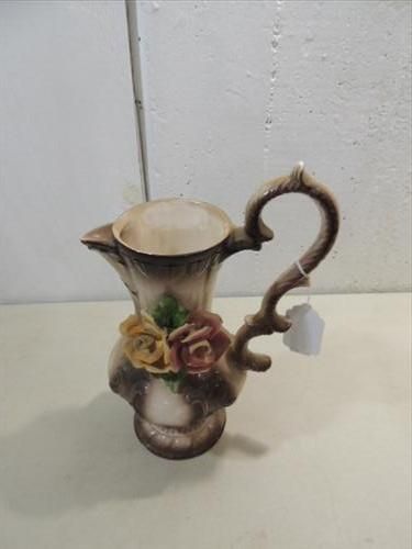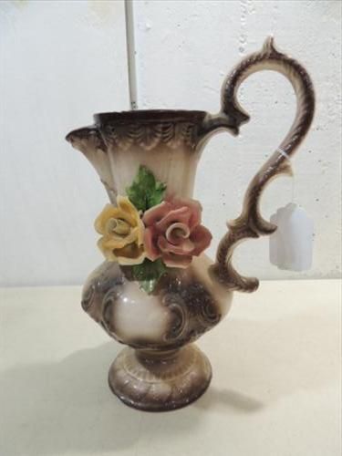 VINTAGE CAPODIMONTE CERAMIC DECORATIVE PITCHER 14"H. NO DAMAGE. AS SHOWN. VIEW PICTURE FOR DETAIL.