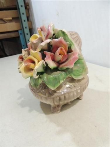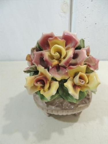 VINTAGE CAPODIMONTE CERAMIC ROSES IN BASKET. NO VISIBLE DAMAGE. AS SHOWN. VIEW PICTURE FOR DETAIL.