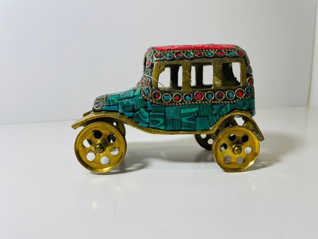 VINTAGE CAR HAND PAINTED BRASS 11CM X 7CM