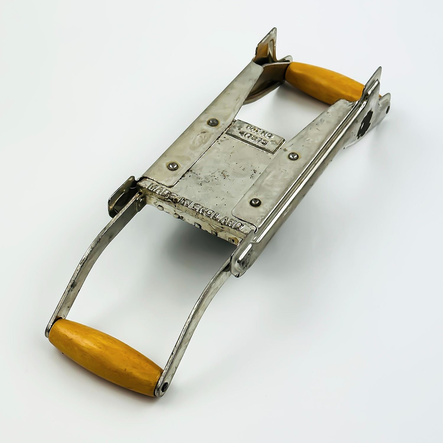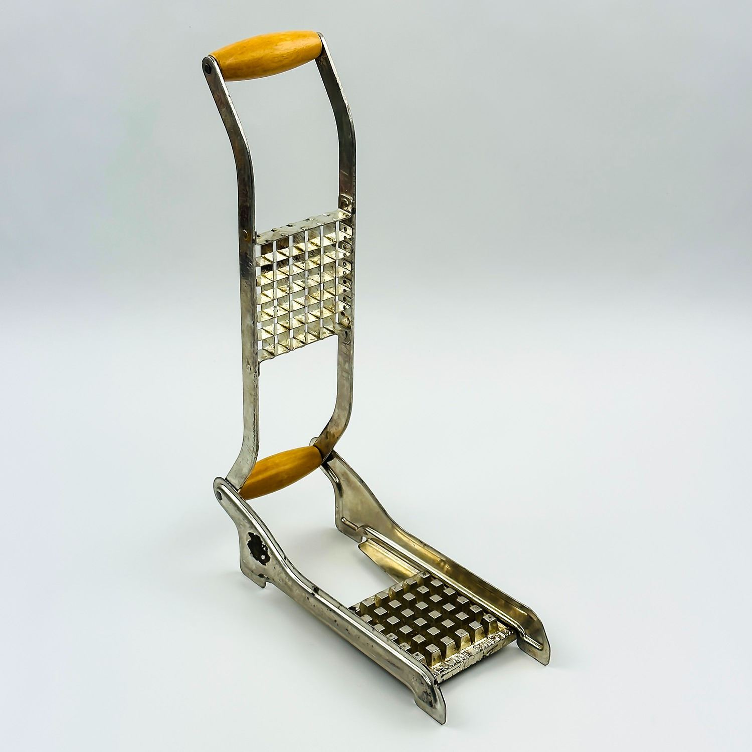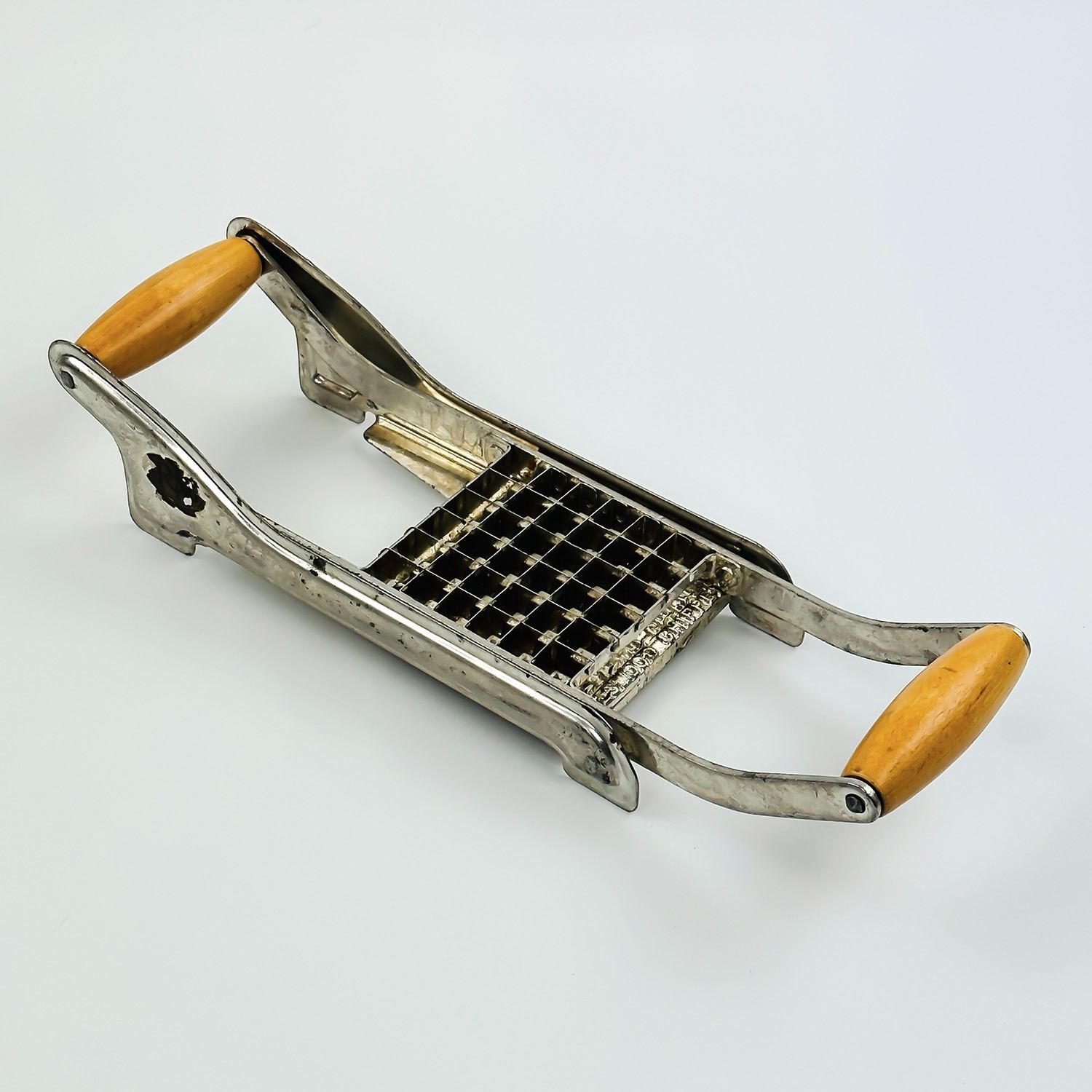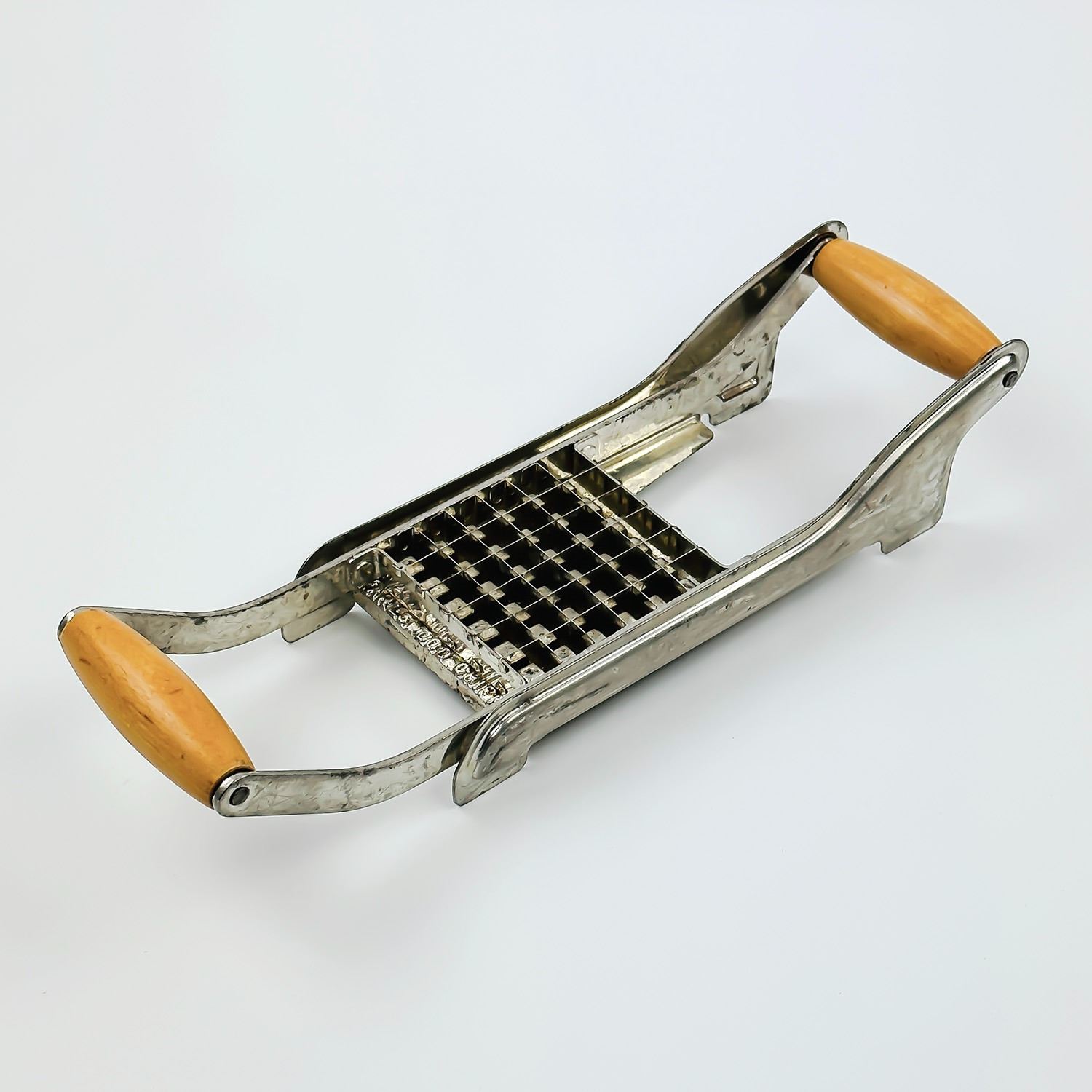 #8234 - POTATO CHIPPER / CUTTER / DICER, METAL WITH WOOD HANDLES. MADE IN ENGLAND. CLOSED MEASUREMENTS: 12” (30.5 CM) LONG BY 3.5” (9 CM) WIDE***ITEM(S) LOCATED IN LETHBRIDGE ALBERTA. FREE TRANSPORT TO EDMONTON OFFICE AVAILABLE FOR THIS AUCTION. WORLDWIDE SHIPPING IS AVAILABLE FOR ALL ITEMS