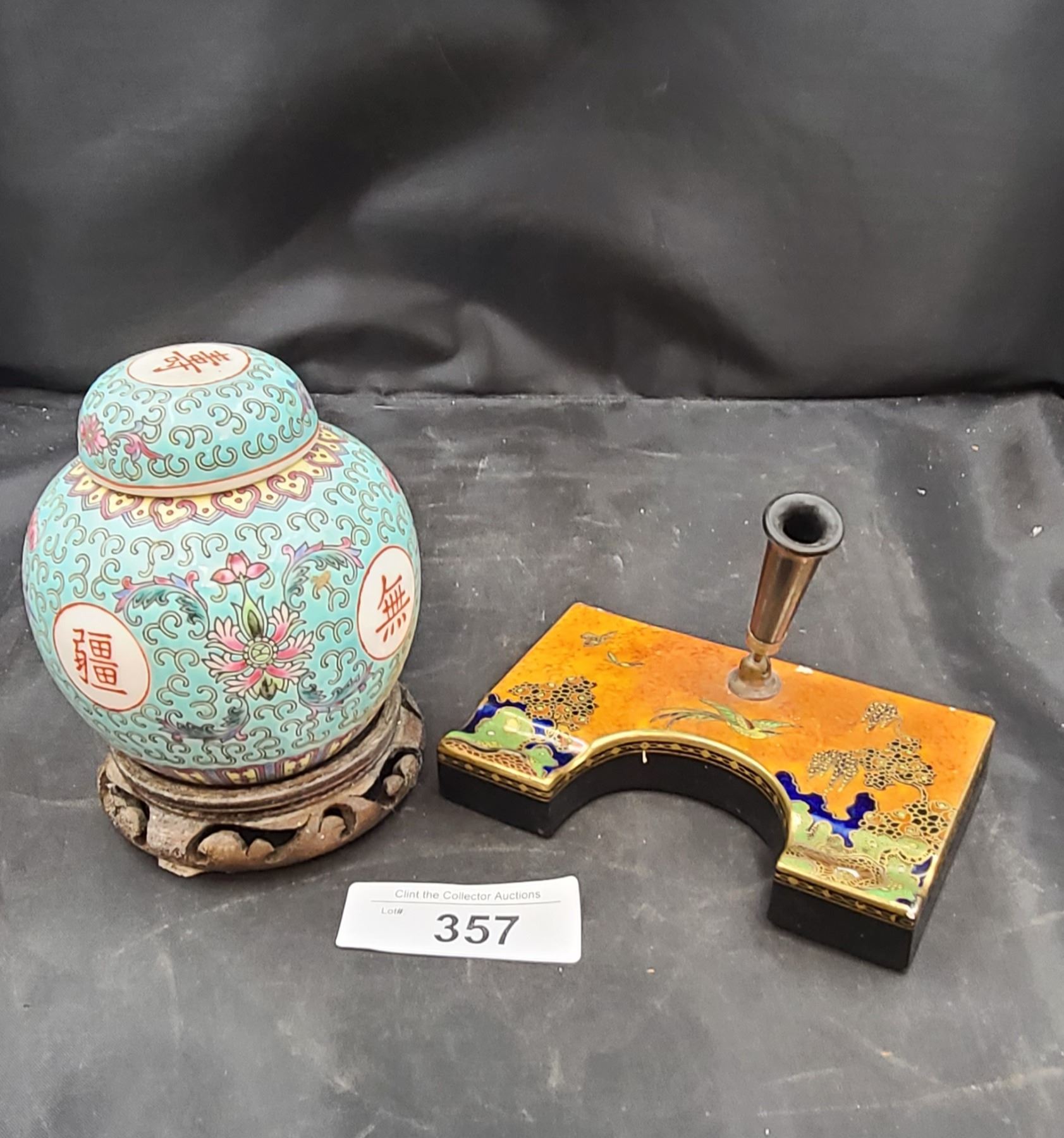VINTAGE CARLTON WARE PEN STAND & ASIAN GINGER JAR