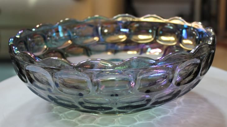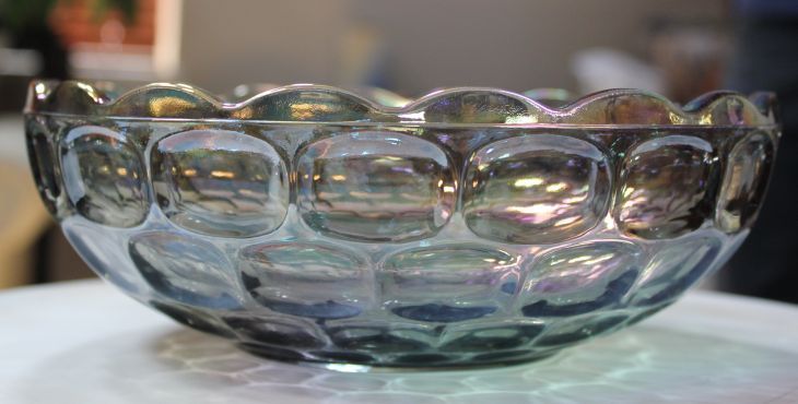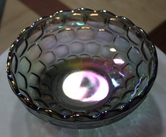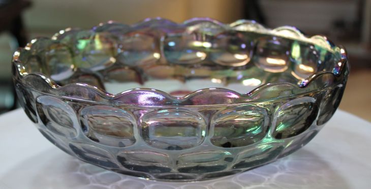 VINTAGE IRREDESCENT CARNIVAL GLASS BOWL - 3.25"H X 9.5" DIAMETER - EXCELLENT CONDITION