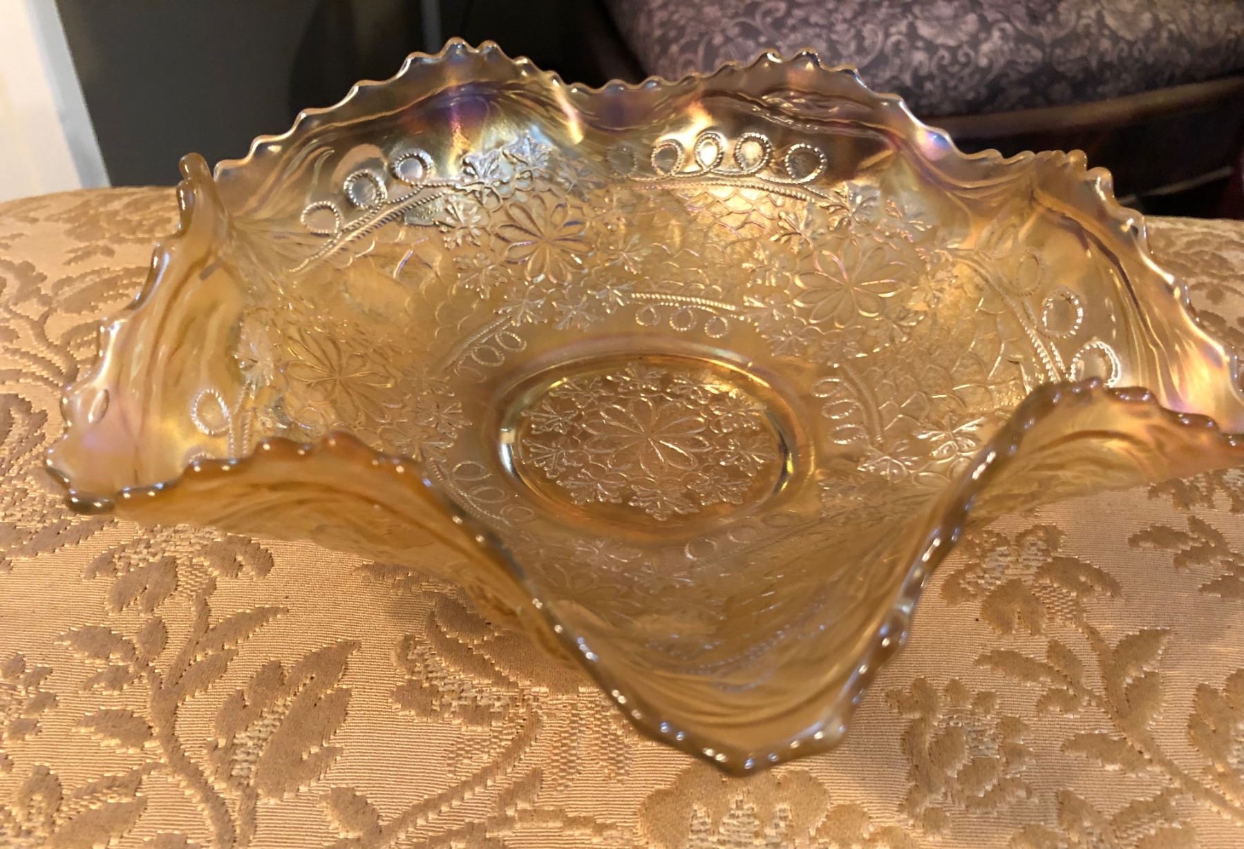 VINTAGE CARNIVAL GLASS CANDY DISH