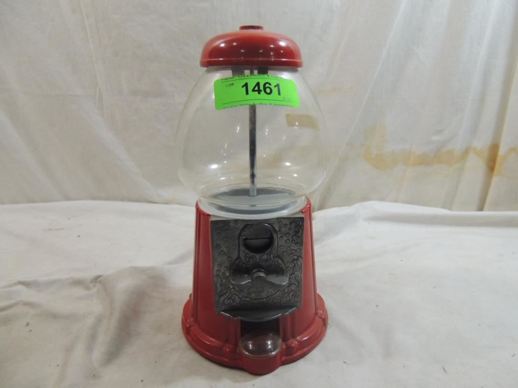 VINTAGE GUMBALL MACHINE, METAL GUMBALL MACHINE, NASTALGIA, GUMBALL DISPENSER, VINTAGE, GLASS GOOD CONDITION, AS SHOWN SEE PHOTO FOR MORE DETAILS.