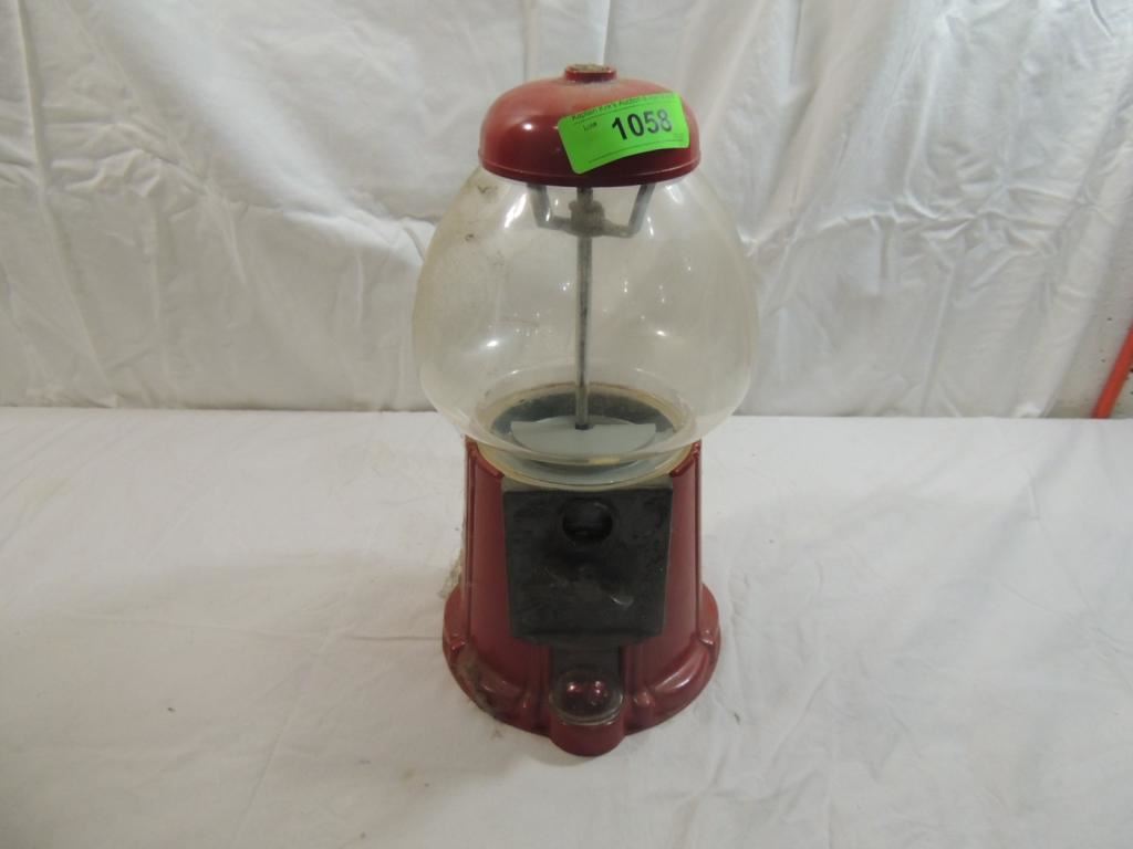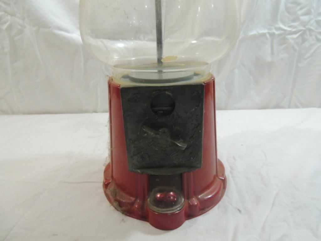 VINTAGE GUMBALL MACHINE, METAL GUMBALL MACHINE, NASTALGIA, GUMBALL DISPENSER, VINTAGE, GLASS GOOD CONDITION, AS SHOWN SEE PHOTO FOR MORE DETAILS.