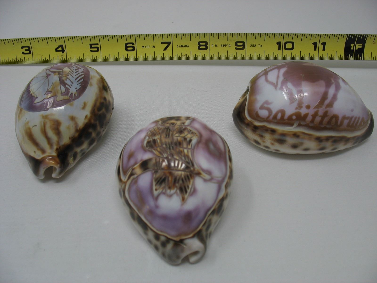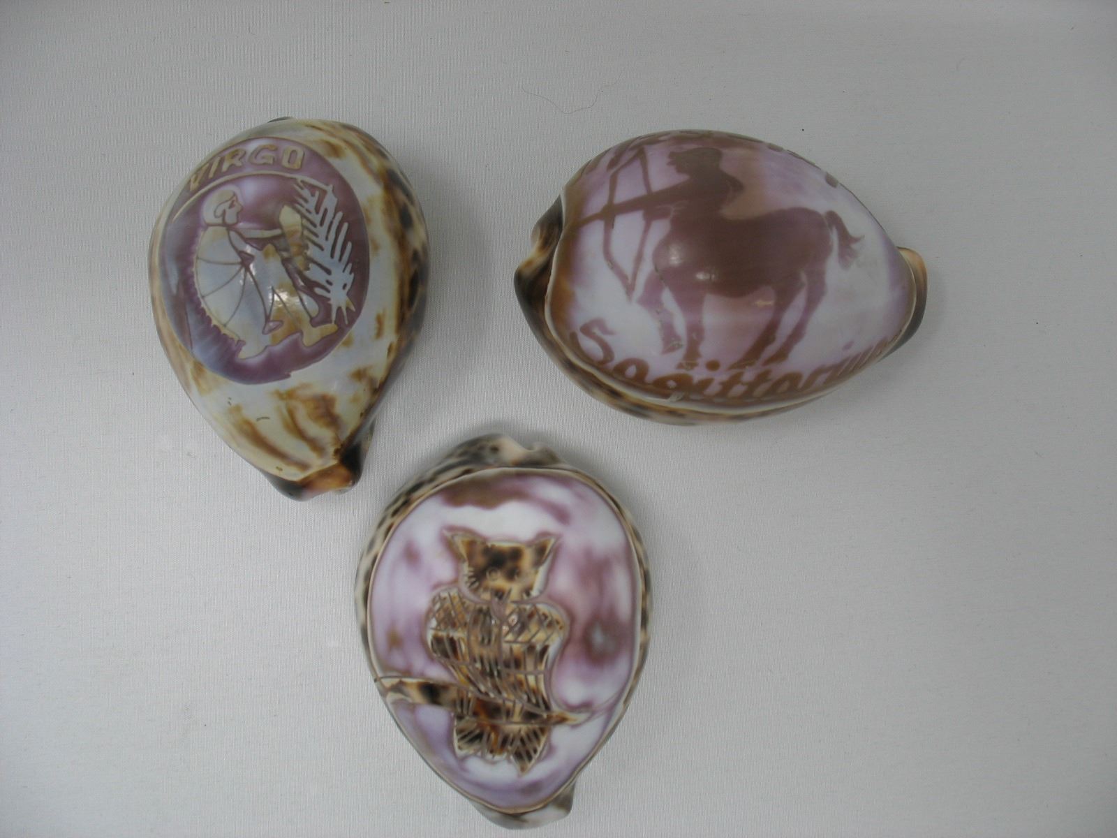 VINTAGE CARVED SEA SHELLS - Lot of 3 - Virgo, Sagittarius, an a Owl