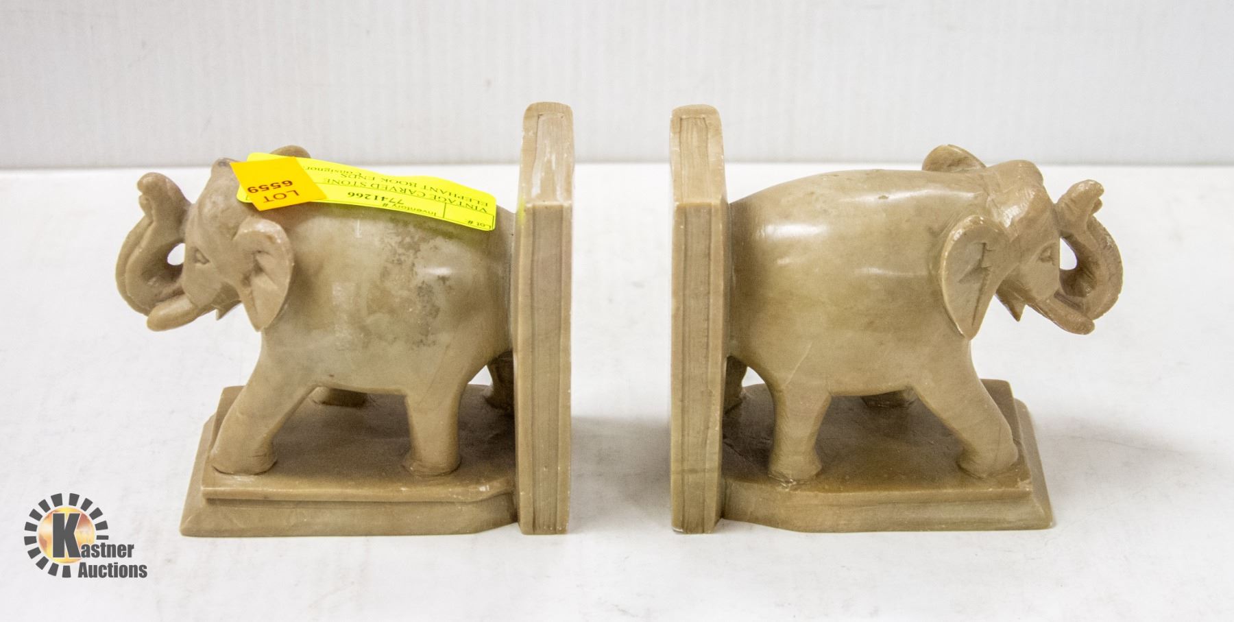 VINTAGE CARVED STONE ELEPHANT BOOK ENDS