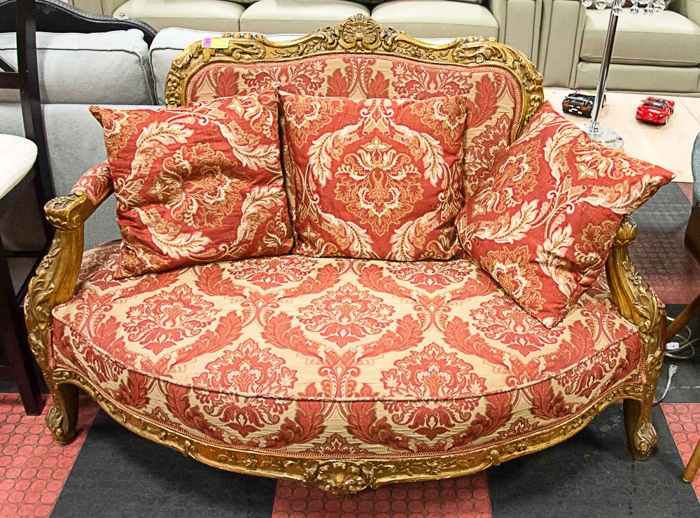 VINTAGE CARVED STYLE UPHOLSTERED LOVE SEAT