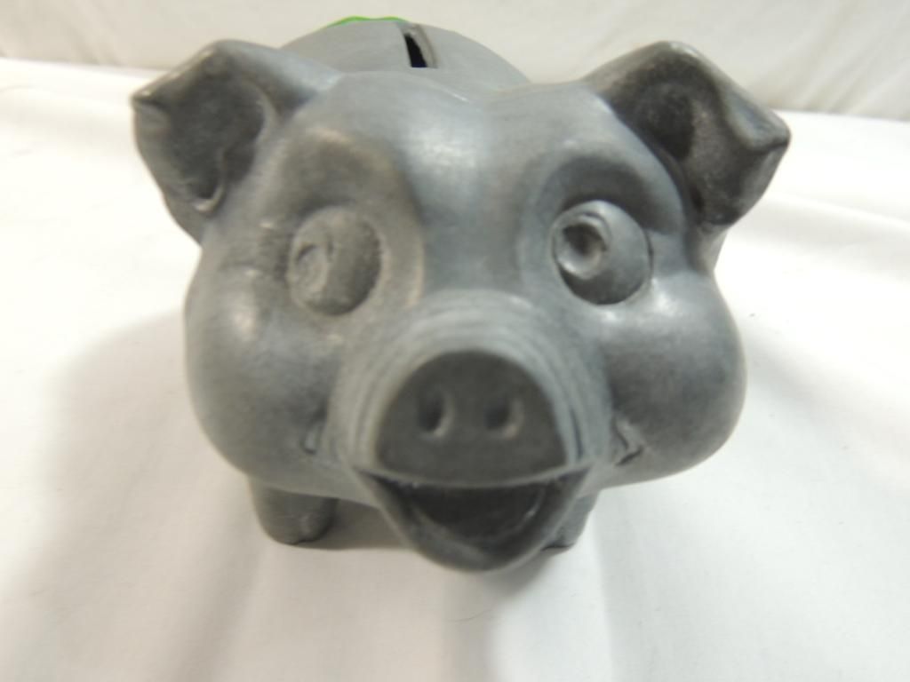 A N BROOKS CORP CHICAGO IL PIGGY BANK VINTAGE CAST IRON PIGGY BANK GRAY METAL VINTAGE AS SHOWN SEE PHOTO FOR MORE DETAILS.