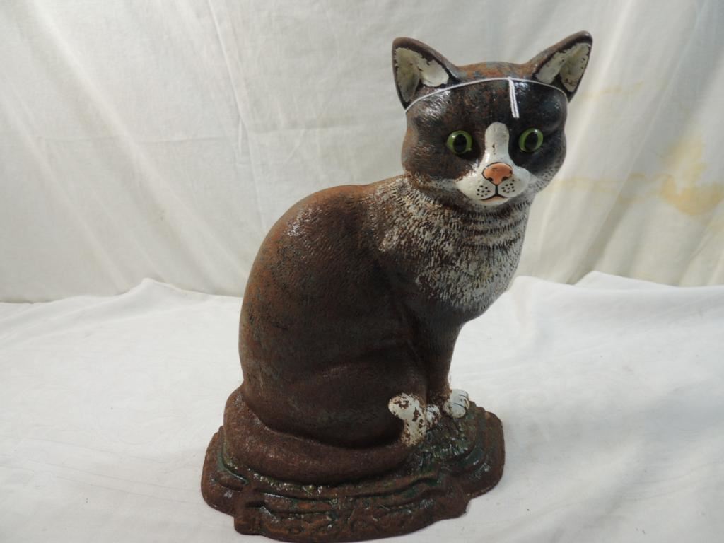 VINTAGE CAST IRON CAT DOOR STOP, DOORSTOP, DECORATIVE DOORSTOP, CAST IRON, HEAVY, CAT, KITTEN, ANTIQUE, VINTAGE HOME DECOR, COLLECTIBLE AS SHOWN SEE PHOTO FOR MORE DETAILS.