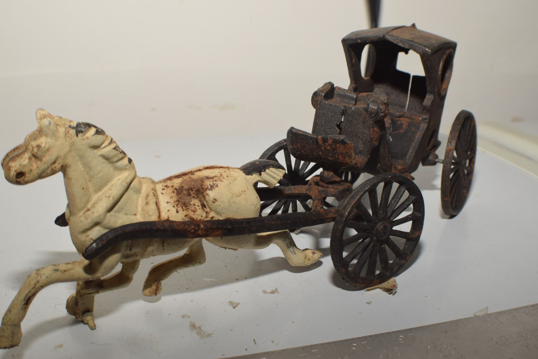 VINTAGE CAST IRON HORSE AND CARRIAGE
