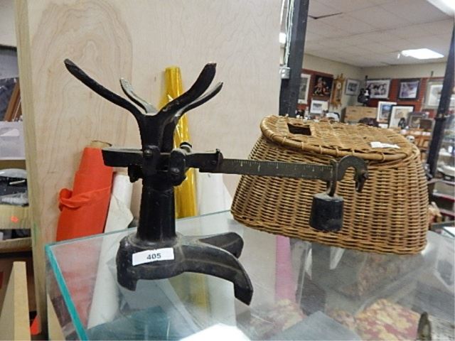 VINTAGE CAST IRON SCALE - UP T O 3 LBS - NO BASKET