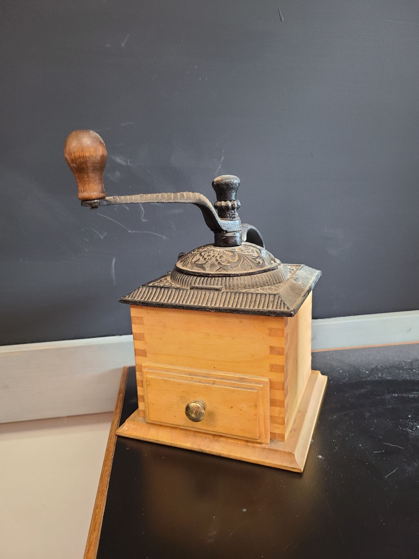 VINTAGE CAST IRON & WOOD COFFEE GRINDER