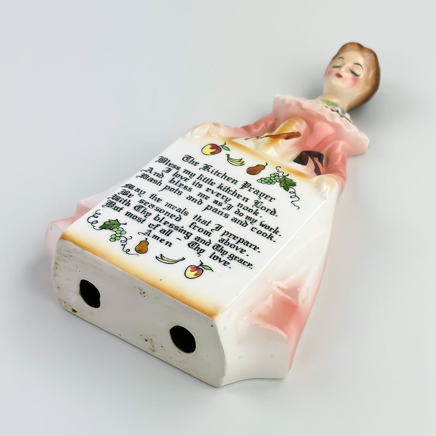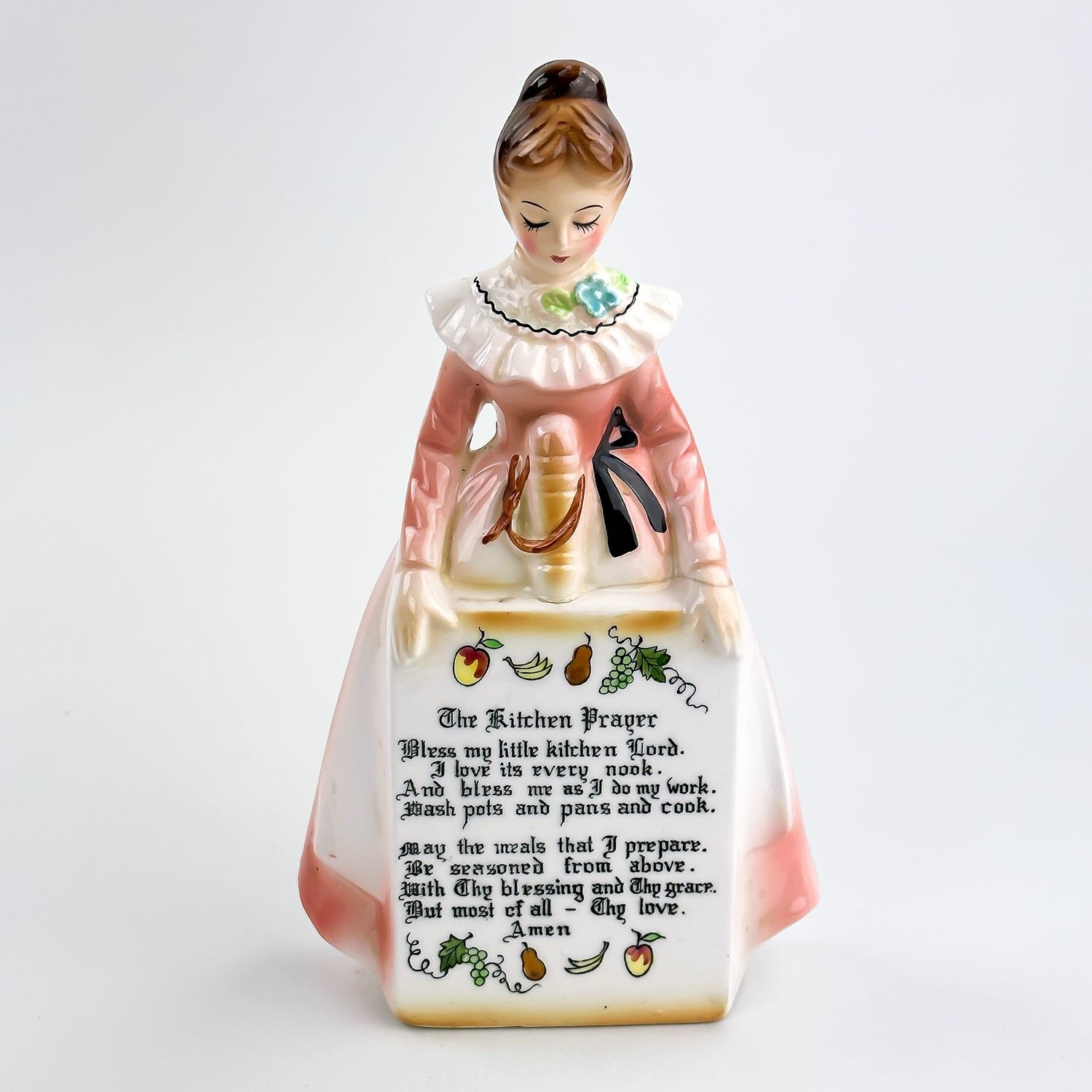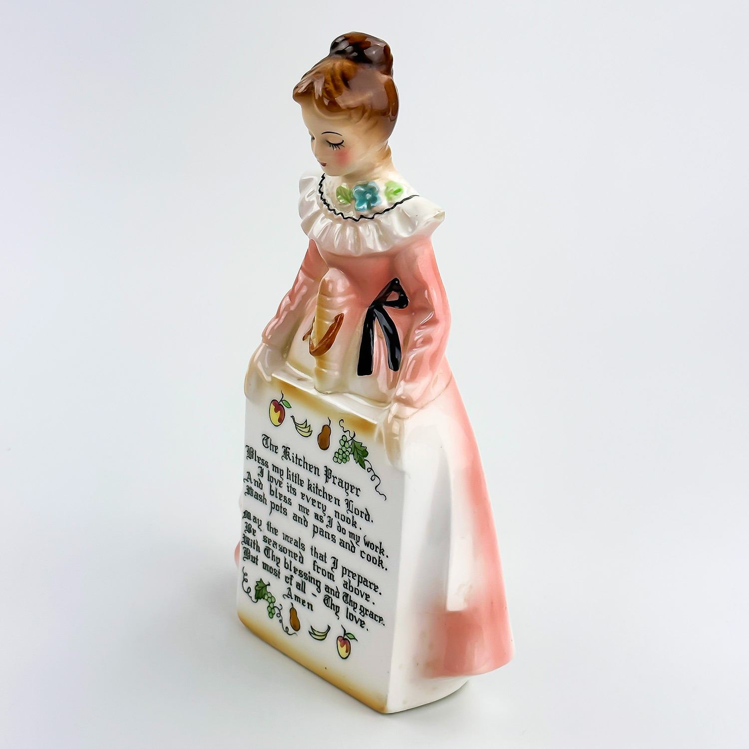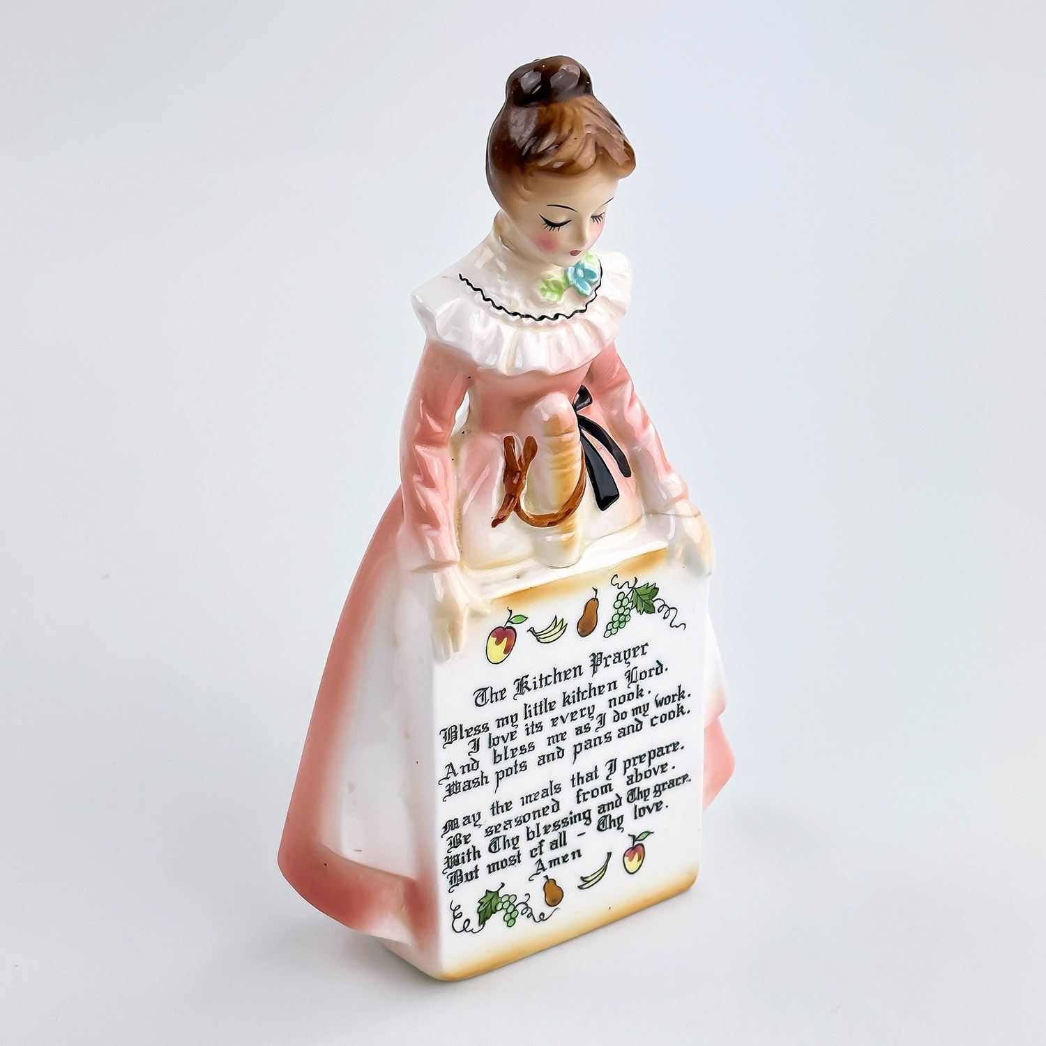 #8263 - VINTAGE PRAYER LADY FIGURINE STATUE BY ENESCO. SHE MEASURES: 7.5” (19 CM) TALL BY 4.25” (11 CM) WIDE AND 1.5” (4 CM) DEEP AT THE BASE