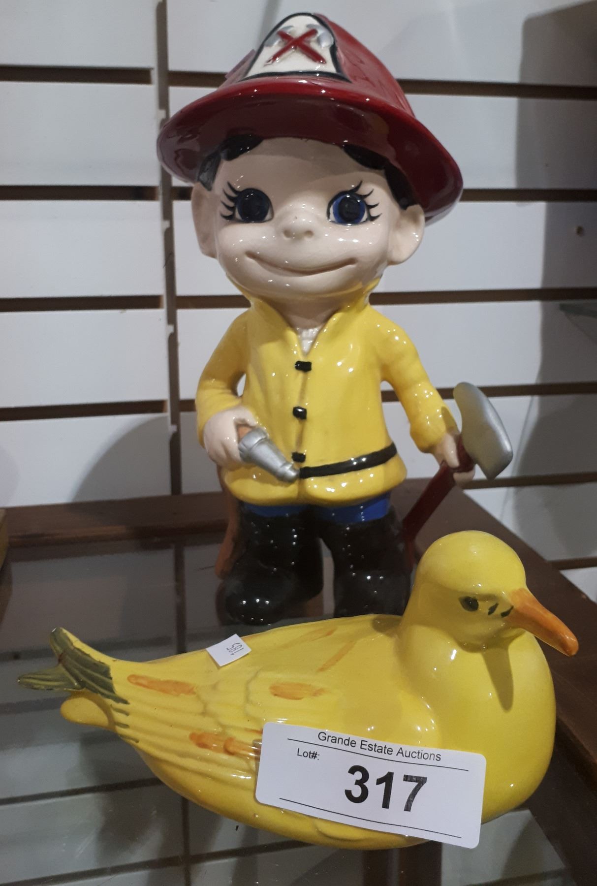 VINTAGE CERAMIC FIREMAN & BIRD FIGURINES
