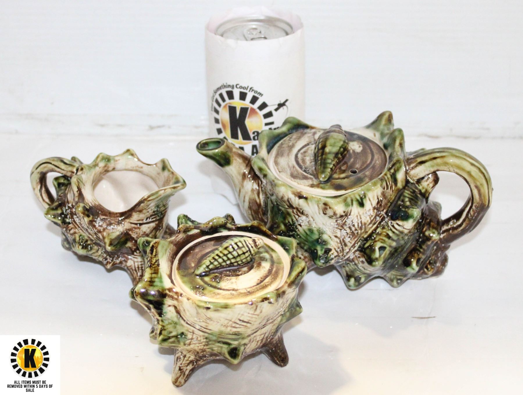 VINTAGE CERAMIC FRANCE SEASHELL 3 PCS TEA SET