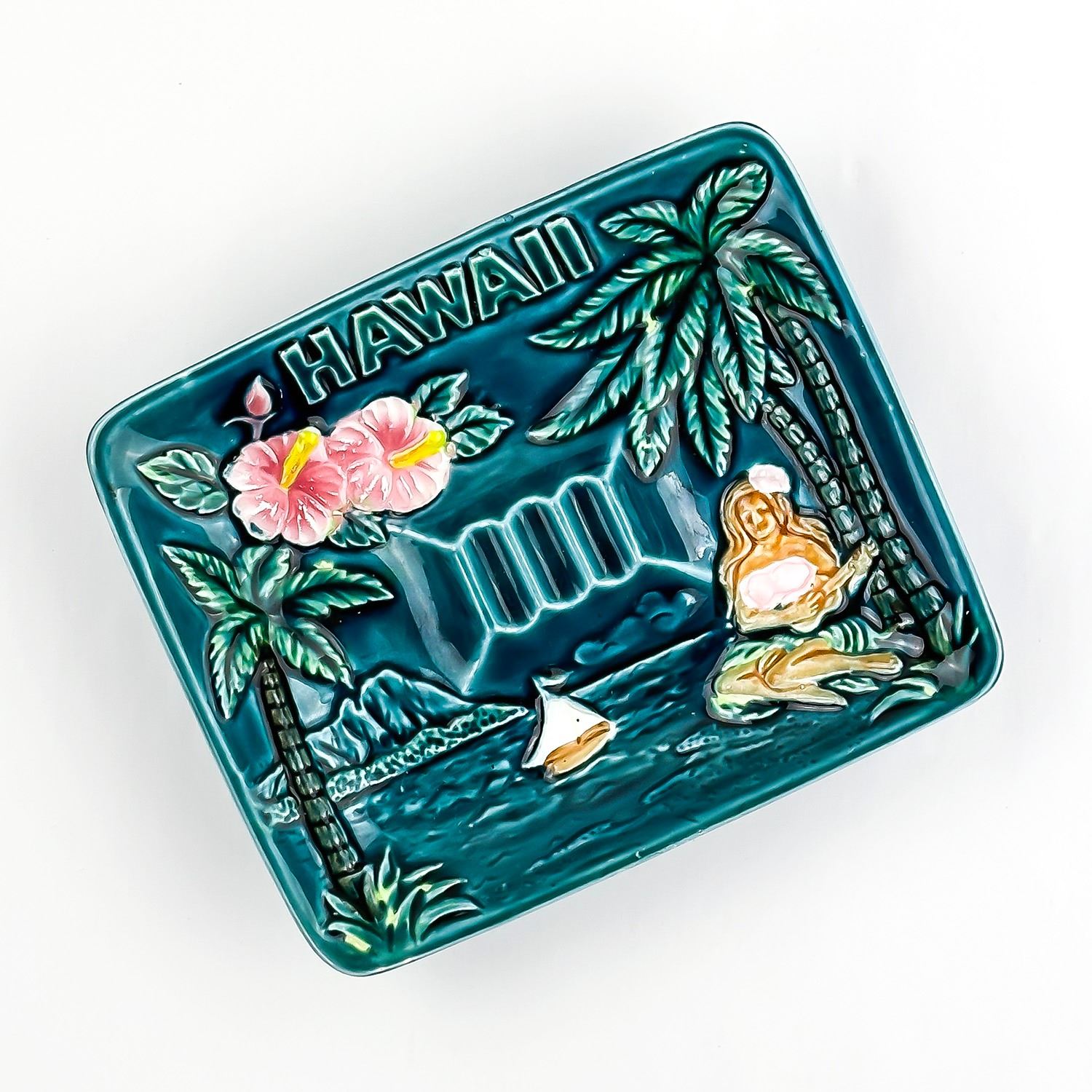 #8972 - CERAMIC SOUVENIR ASHTRAY. MEASURES:7” (17.5 CM) LONG BY 6” (15 CM) WIDE AND 1.125” (3 CM) HIGH