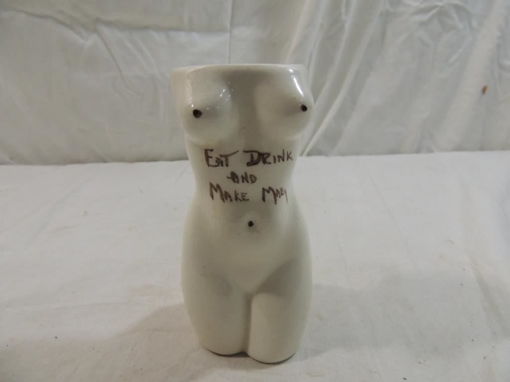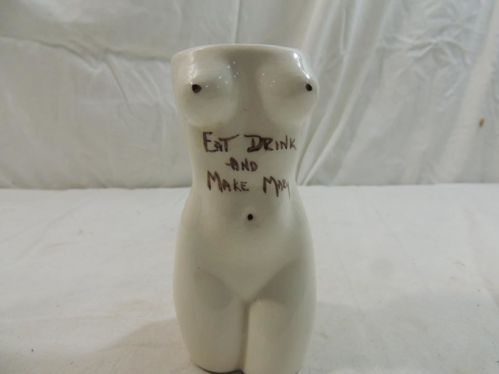 CERAMIC ADULT VASE, MUG, CUB, CERAMIC NOVELTY, DECORATIVE, COLLECTIBLE RARE, ADULT HUMOR CUP VASE AS SHOWN SEE PHOTO FOR MORE DETAILS.