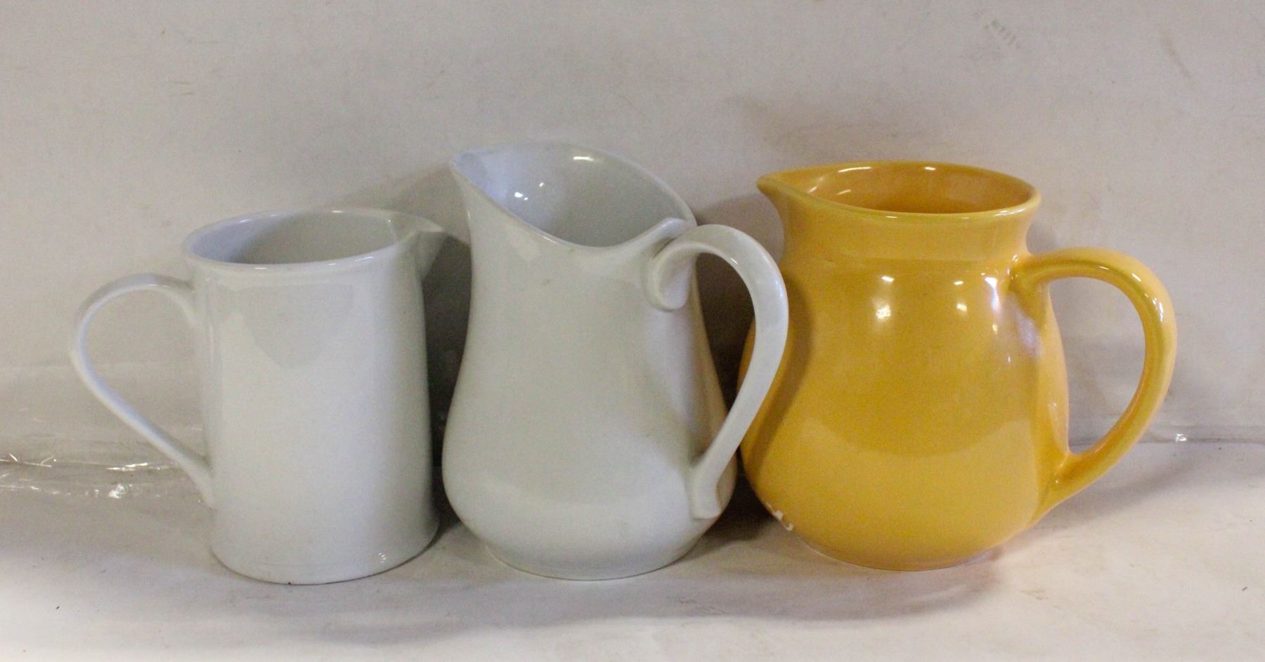 VINTAGE CERAMIC PITCHERS YELLOW+WHITE 7" HIGH