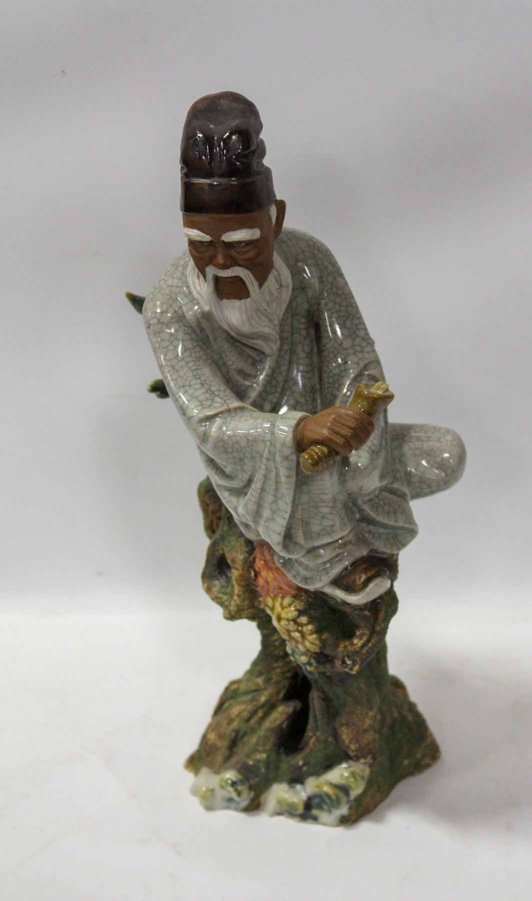 VINTAGE CERAMIC STATUE OF SEATED ASIAN MAN