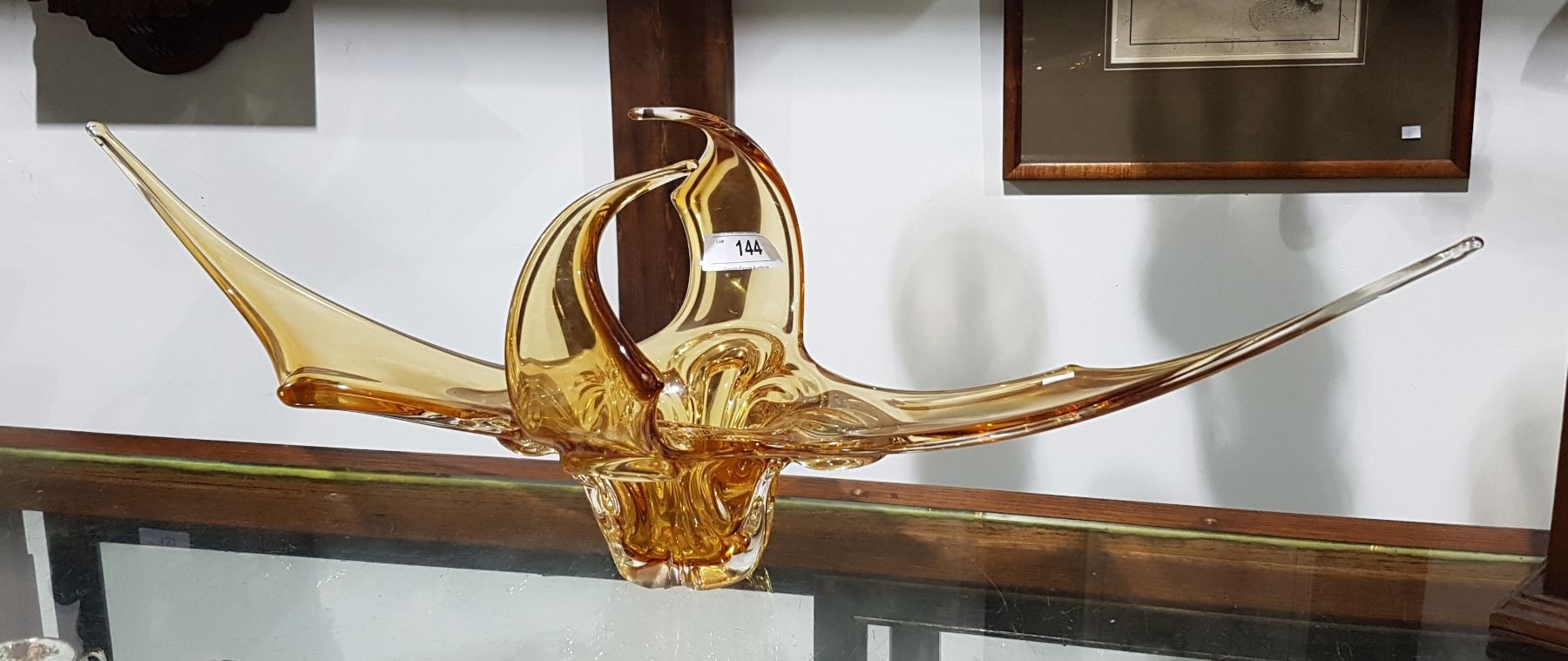 VINTAGE CHALET AMBER ART GLASS CENTREPIECE