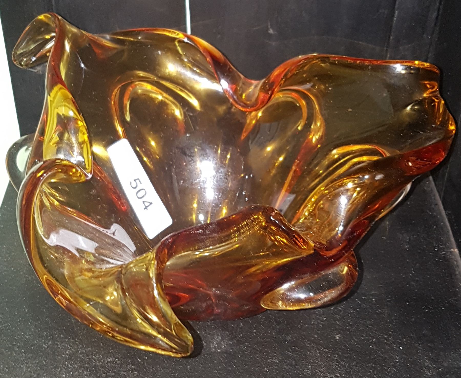 VINTAGE CHALET AMBER ART GLASS CENTREPIECE