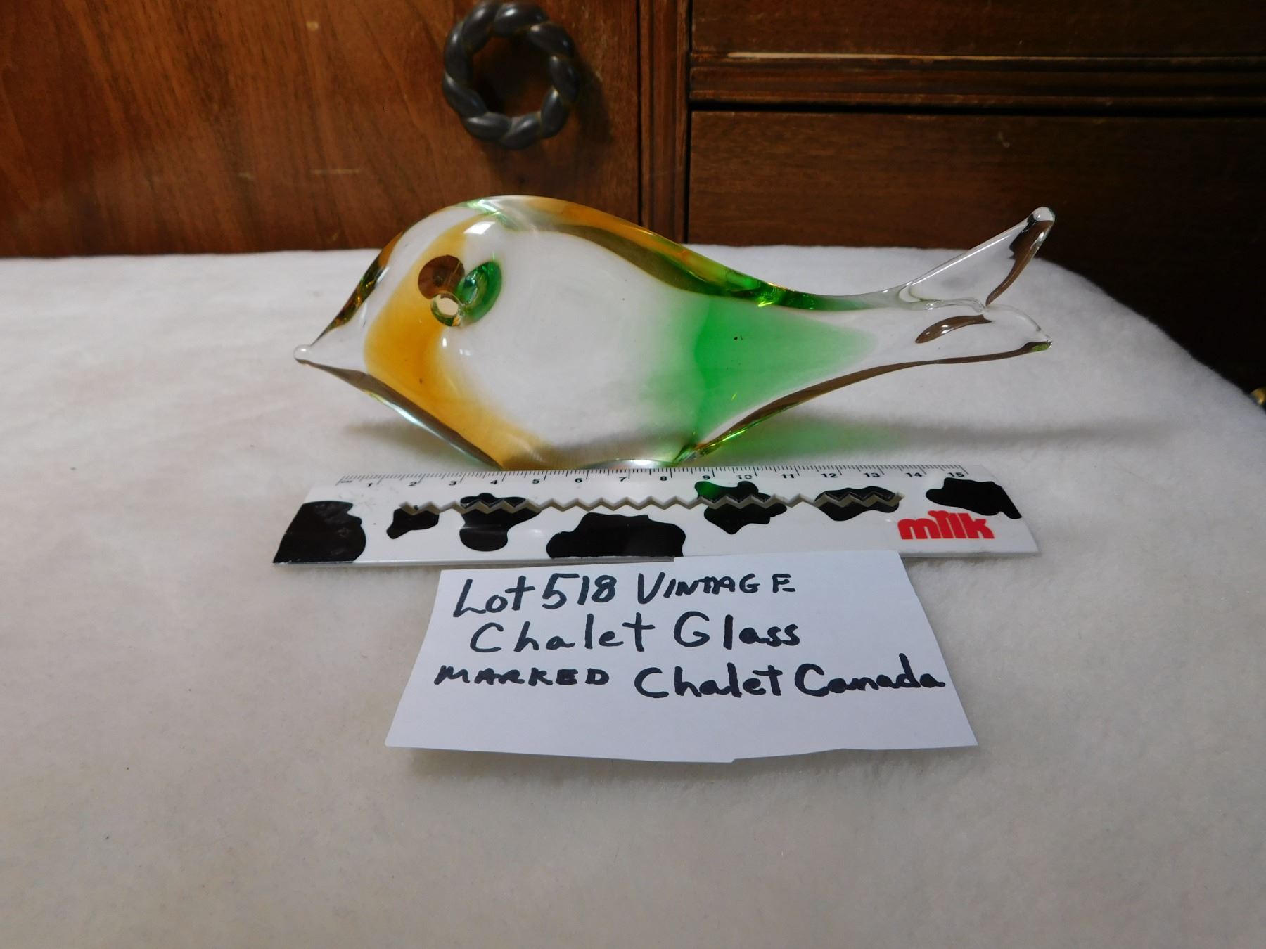 VINTAGE CHALET ARTGLASS FIGURINE MARKED CHALET CANADA