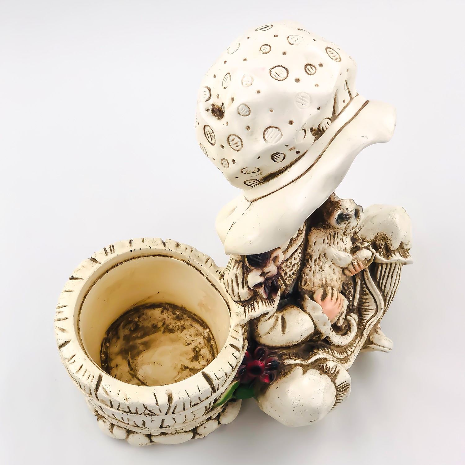 #8647 - LARGE PLANTER SCULPTURE - GIRL AND CAT THEME. THE RUSTIC LOOKING BROWN TEXTURE IS ALL PART OF THE DESIGN. MEASURES: 10.5” (26.5 CM) TALL BY 11” (28 CM) WIDE AND 6.5” (16.5 CM) DEEP. PLANTER AREA IS 3.75” (9.5 CM) IN DIAMETER AND2.75” (7 CM)***ITEM(S) LOCATED IN LETHBRIDGE ALBERTA. FREE TRANSPORT TO EDMONTON OFFICE AVAILABLE FOR THIS AUCTION. WORLDWIDE SHIPPING IS AVAILABLE FOR ALL ITEMS