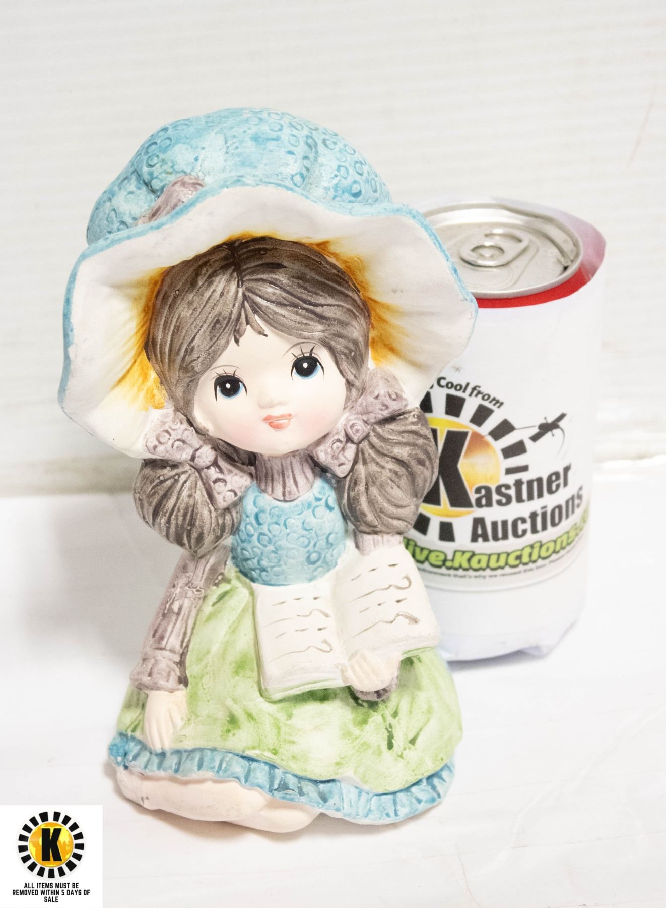 VINTAGE CHALKWARE READING GIRL BANK 7 IN H