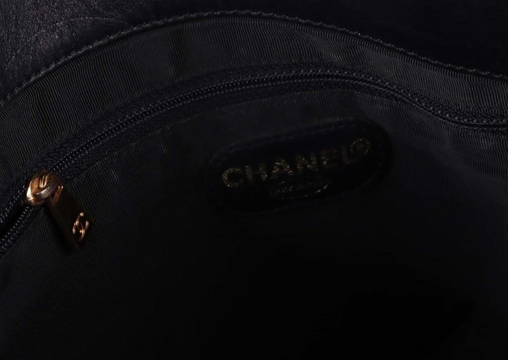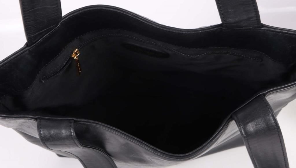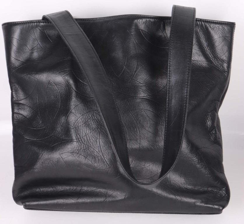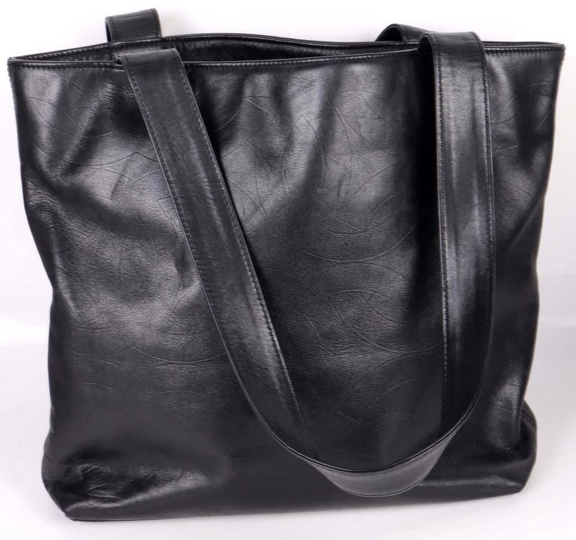 VTG Chanel Black Leather Small Tote Handbag.