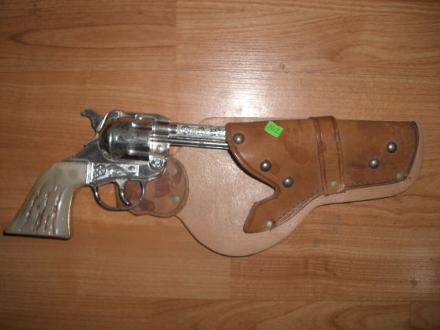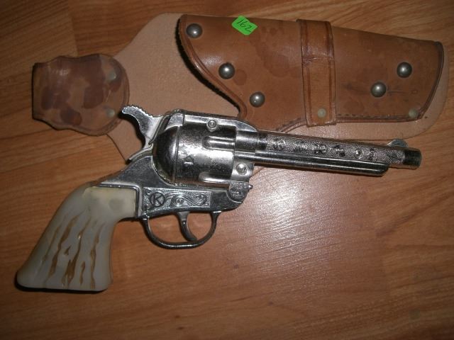 VINTAGE *CHEYENNE* TOY CAPGUN STAMPED *CHEYENNE-MADE IN USA*!! HEAVY DUTY IN GREAT CONDITION COMPLETLEY WORKS AND COMES WITH ORIGINAL LEATHER CAP GUN HOLSTER!! ITEM CAME OUT OF ESTATE!! ***Coin, Currency & All Items Listed in this auction - Grades, Conditions and Values are not Safe Deposit Coins LLC Responsibilty. Grades, Condition and Values are determined by Consigner(s) & Buyers ONLY