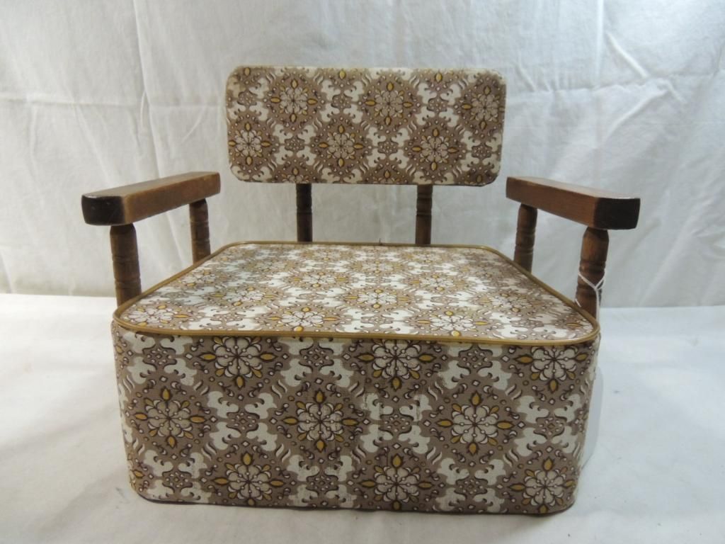 DINER BOOSTER SEAT, VINYL BROWN PATTERN WOODEN FRAME DINER CHAIR. MID CENTURY BROWN COLOR AS SHOWN SEE PHOTO FOR MORE DETAILS.