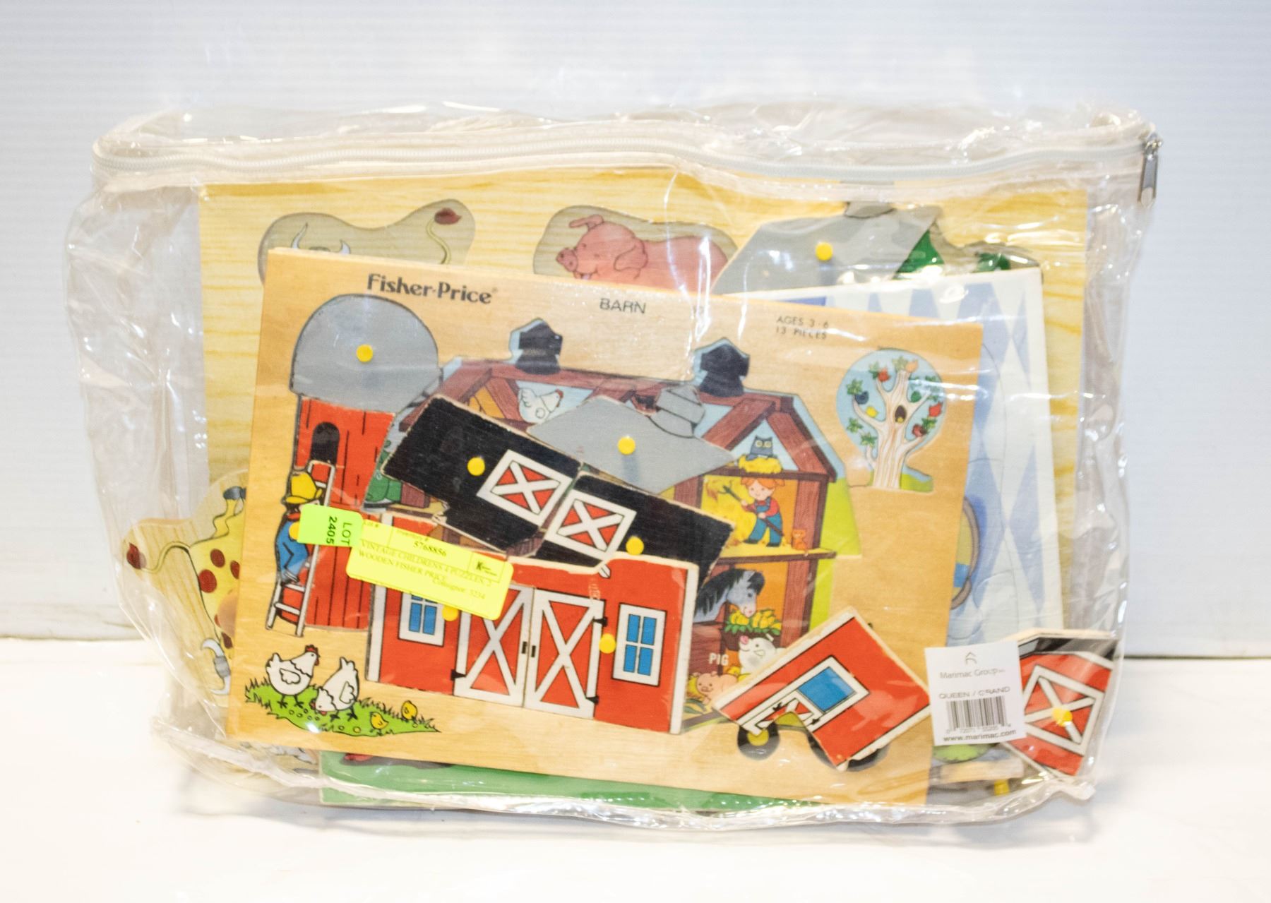 VINTAGE CHILDRENS 4 PUZZLES, 2 WOODEN FISHER PRICE