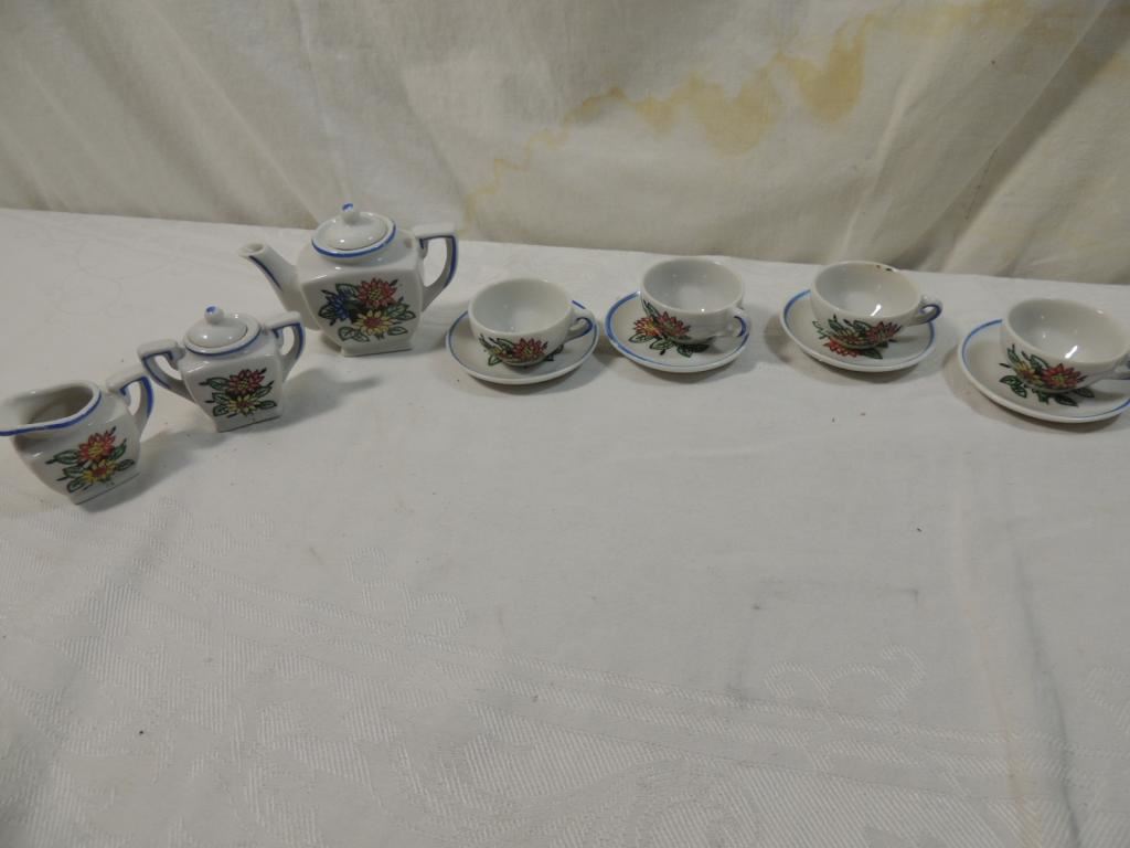 DECORATIVE PORCELAIN TOY TEA SET, MINI TEA SET, FLORAL PATTERN, DECORATIVE TEA SET, AS SHOWN SEE PHOTO FOR MORE DETAILS