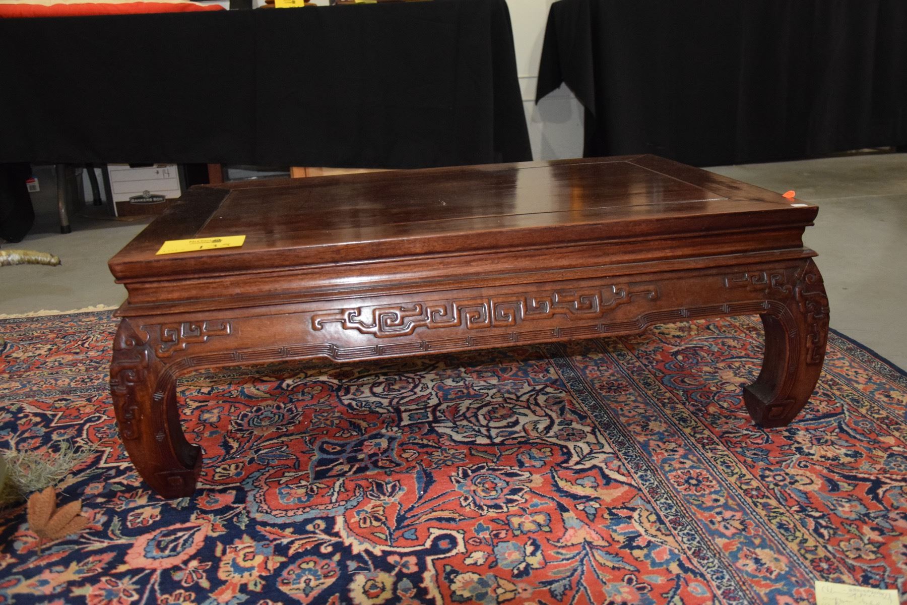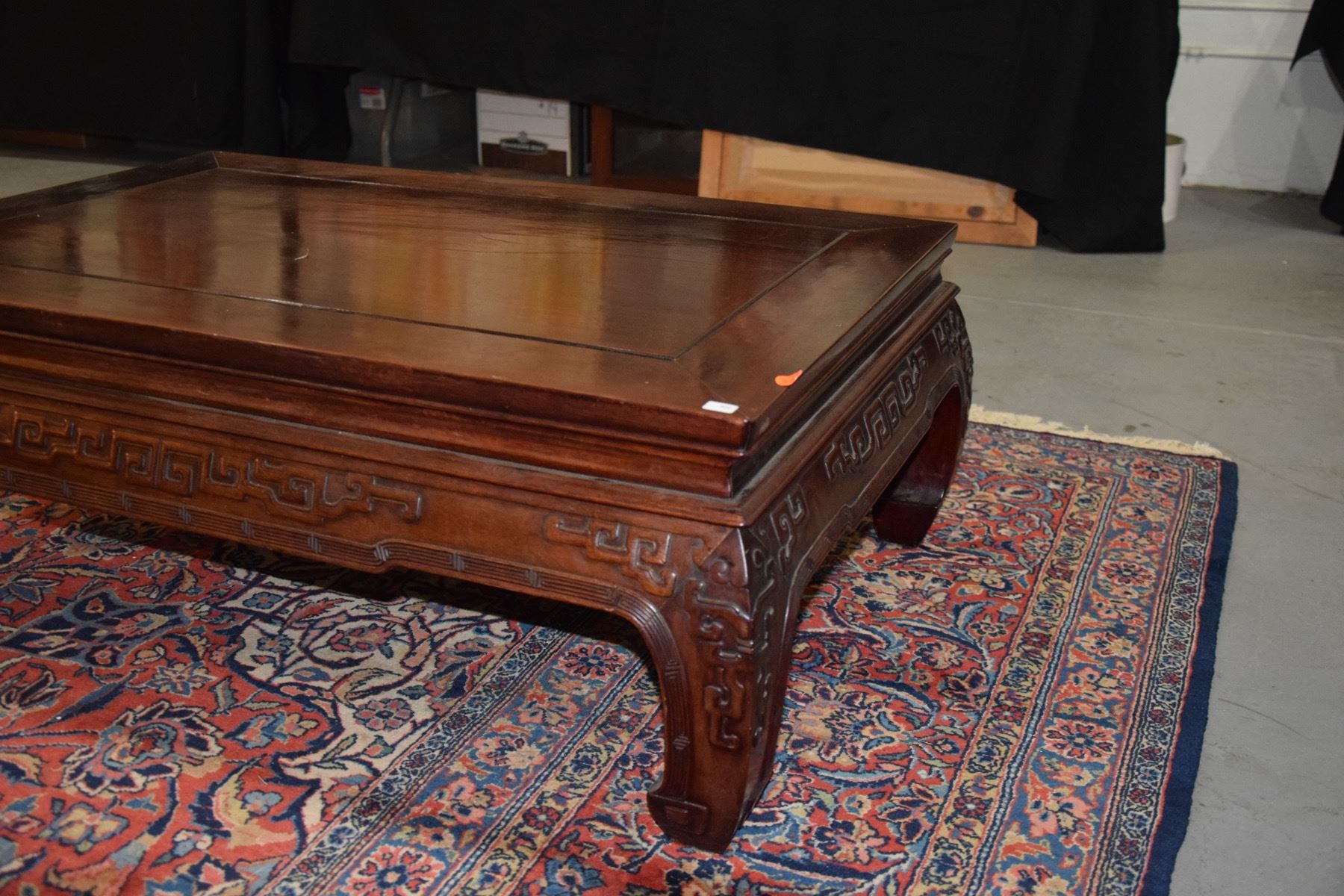 VINTAGE CHINESE HEAVY ROSEWOOD COFFEE TABLE W/CARVED APRON (37  X 25  X 13 )