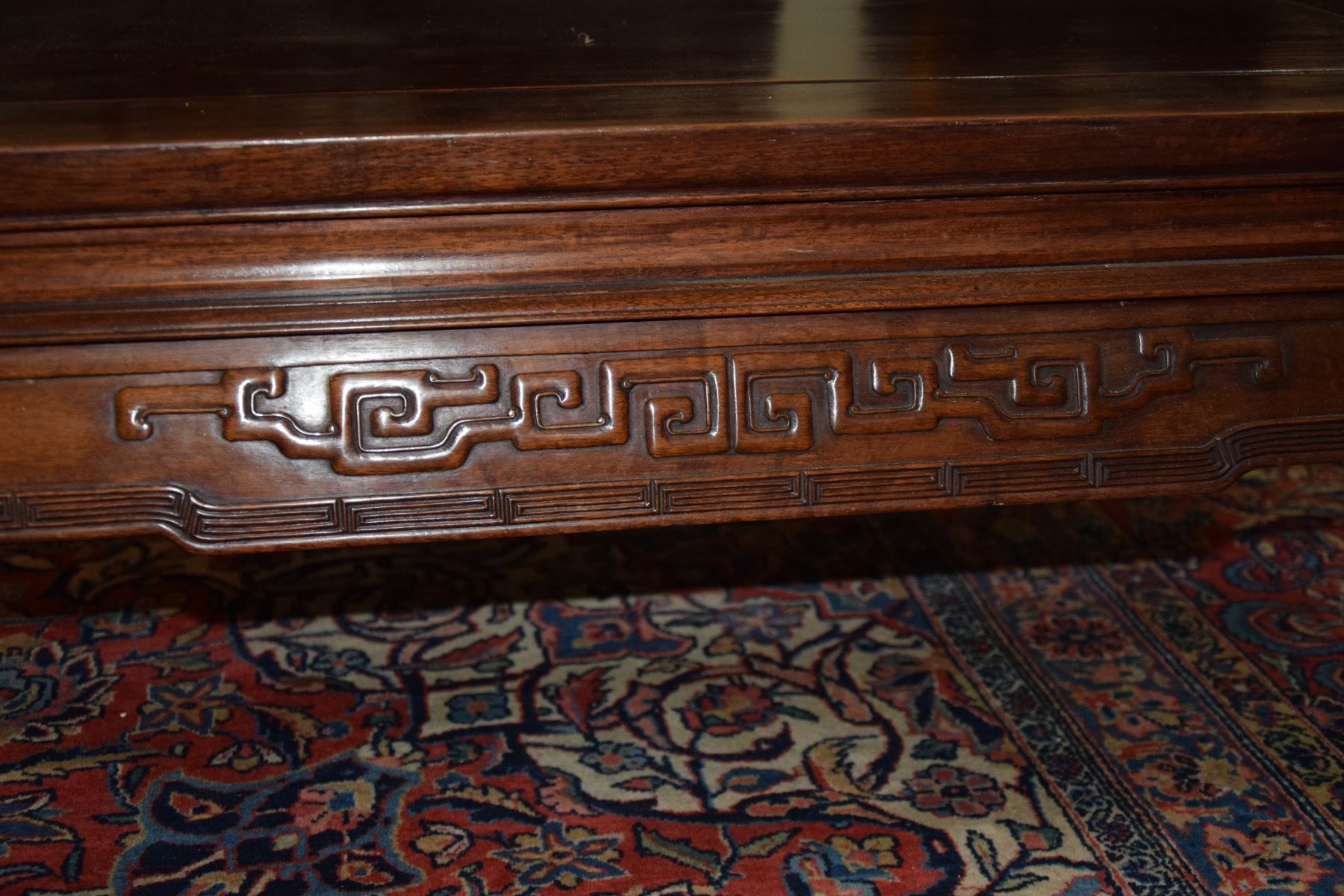 VINTAGE CHINESE HEAVY ROSEWOOD COFFEE TABLE W/CARVED APRON (37" X 25" X 13")
